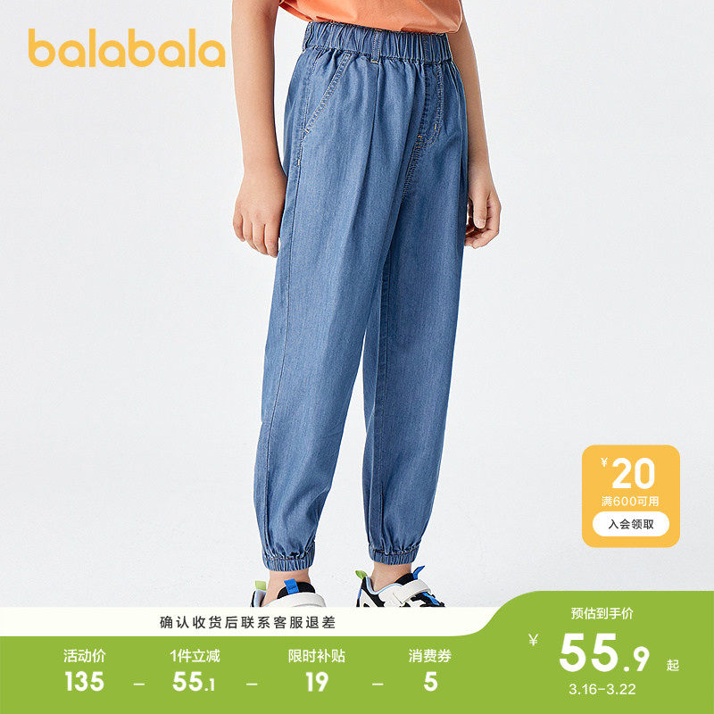 巴拉巴拉童装男童裤子儿童牛仔裤夏装防蚊薄款大童天丝牛仔束脚裤