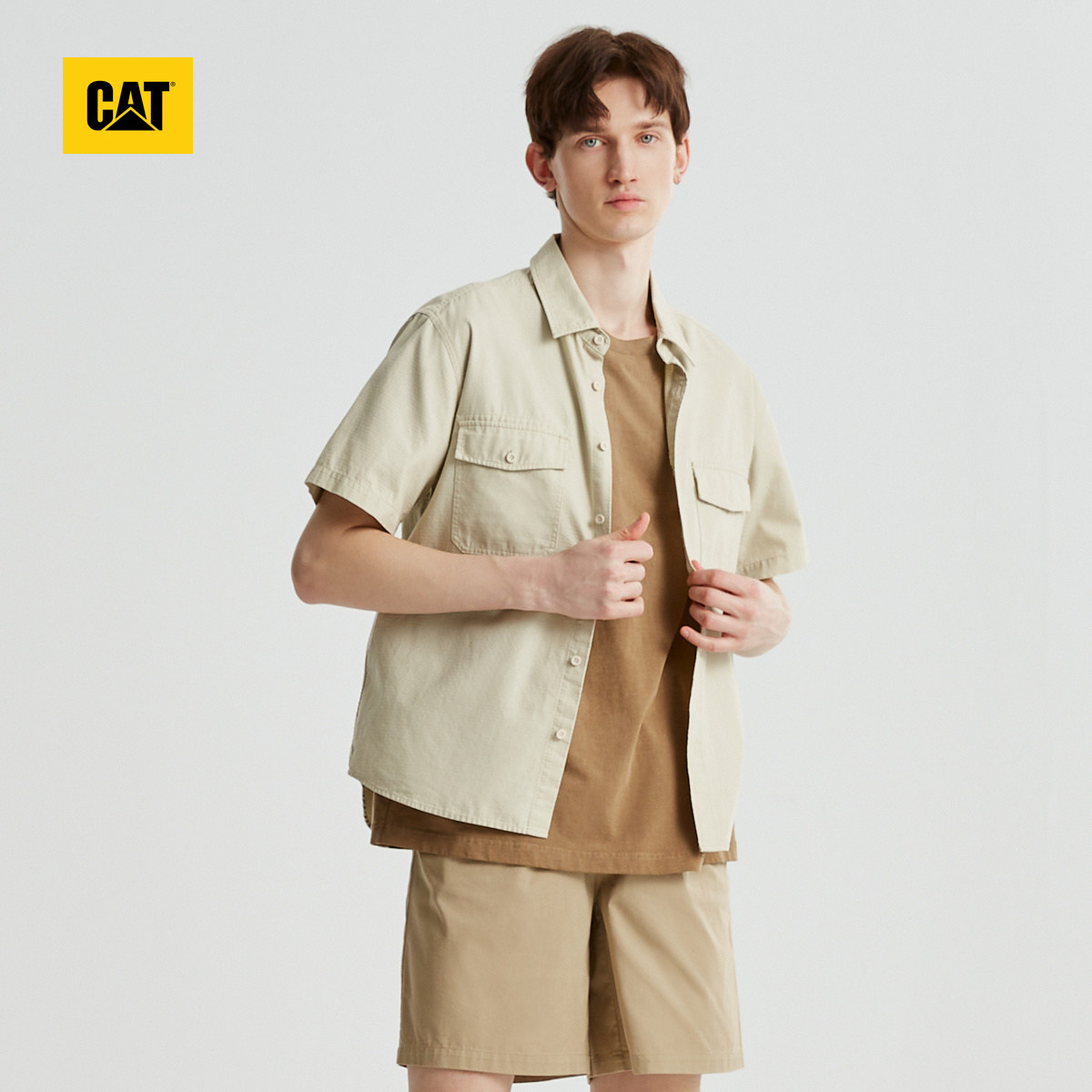 CAT卡特春季男士户外经典工装风全棉百搭短袖衬衫外套商场同款