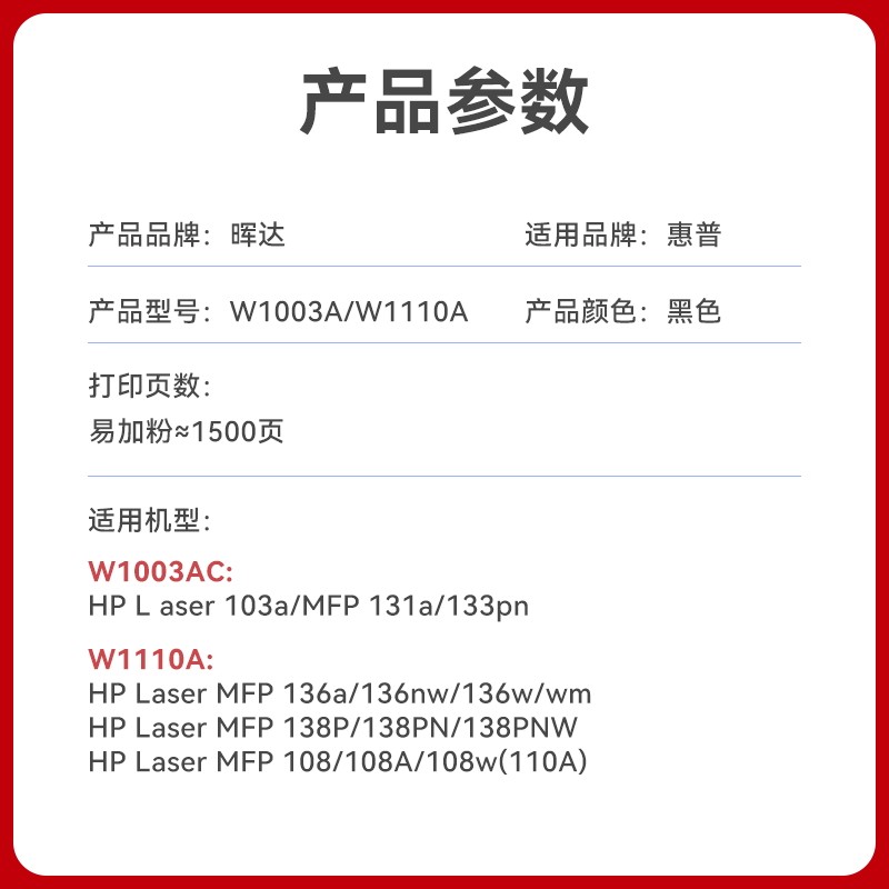 晖达适用惠普103a硒鼓hp131a W1003ac墨盒HP Laser MFP 133pn打印机碳粉盒131a硒鼓W1003A易加粉墨粉盒一体机