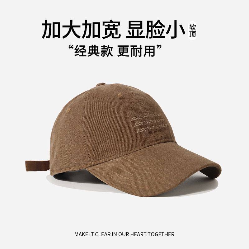 美式复古字母灰色棒球帽女高级感宽檐大头围显脸小百搭鸭舌帽子男