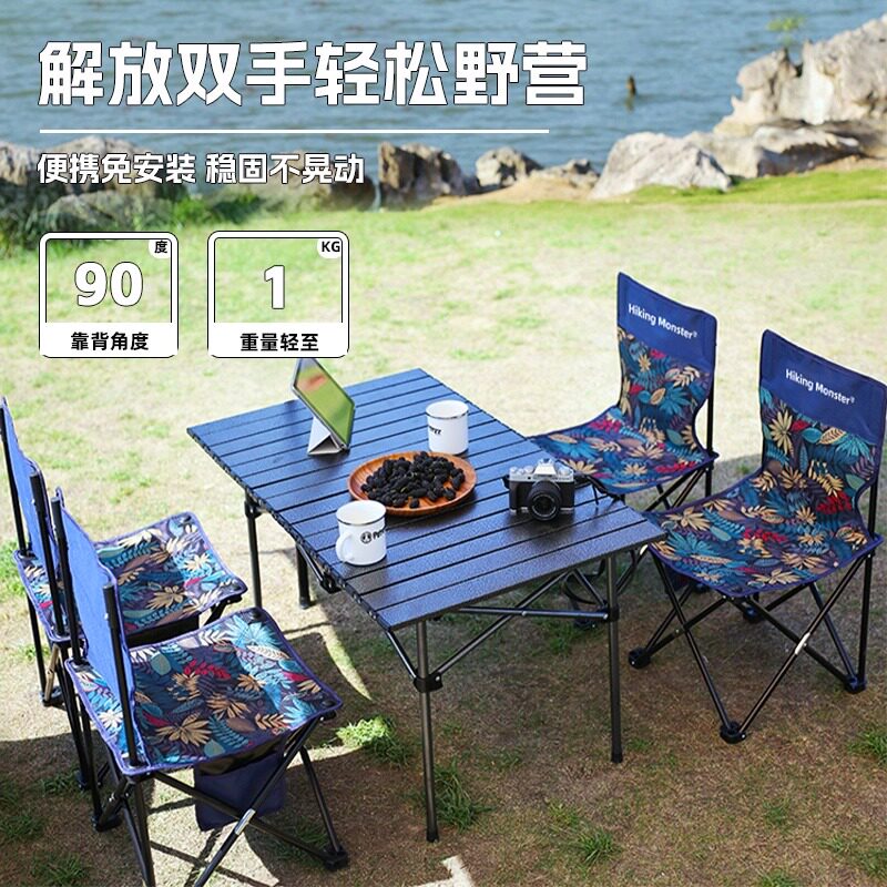 露营户外折叠桌椅野餐桌摆摊烧烤车载写生沙滩椅便携蛋卷桌椅套装