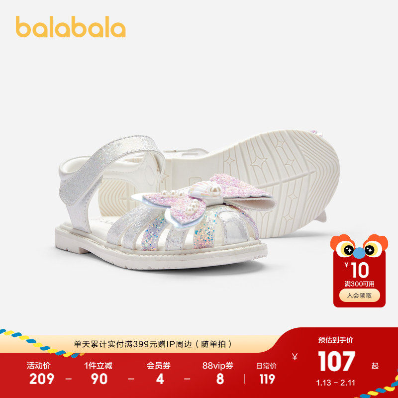 巴拉巴拉女童凉鞋儿童鞋子夏新款精致小女孩软底水晶公主鞋蝴蝶结