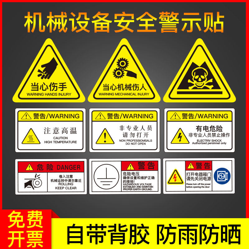 有电危险警示贴小心当心触电机械设备安全标识贴纸生产用电配电箱闪电标志警告消防标牌高压注意提示标示牌子
