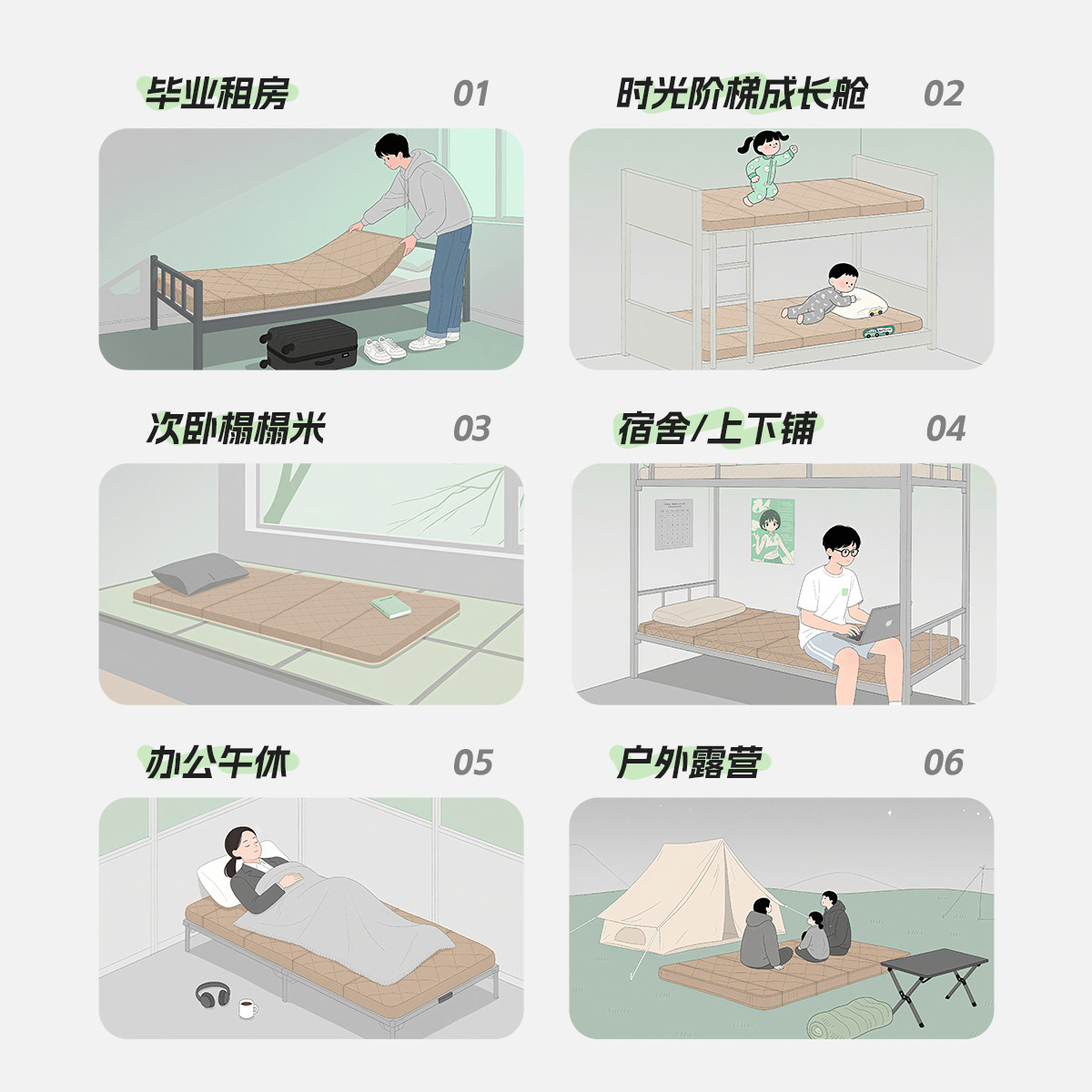 麻大师可折叠拆洗黄麻0胶水单人学生宿舍专用硬薄款90x200cm床垫