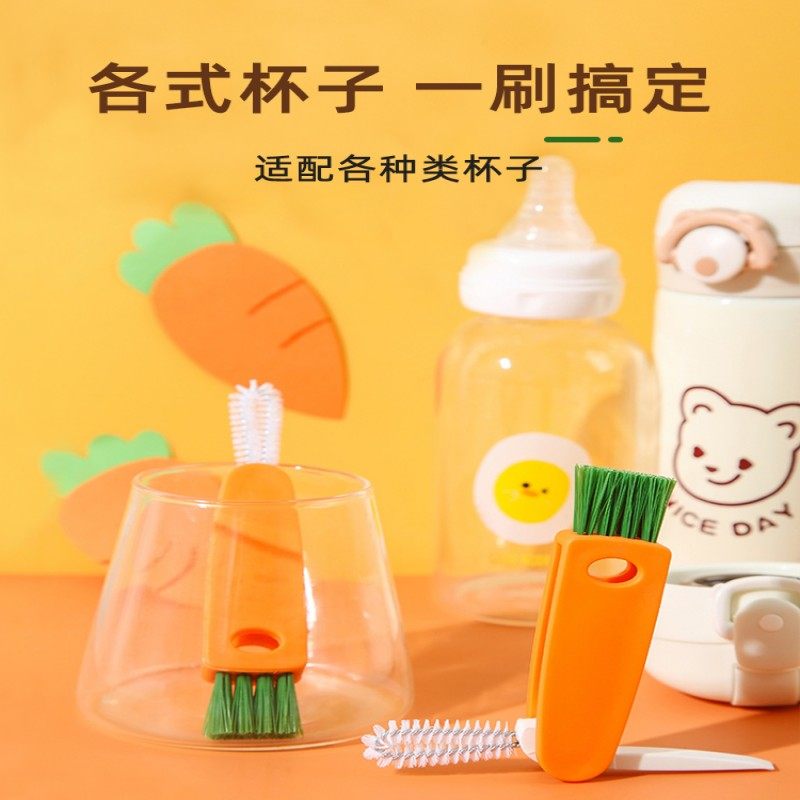 奶瓶刷婴儿专用洗杯刷三合一清洗神器保温杯杯子杯盖缝隙胡萝卜