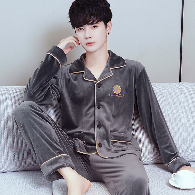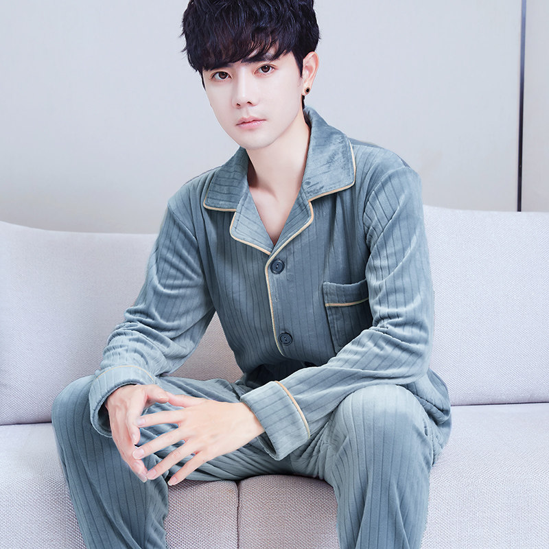 新款珊瑚绒睡衣男士秋冬款加厚套装加绒法兰绒男款冬季家居服大码