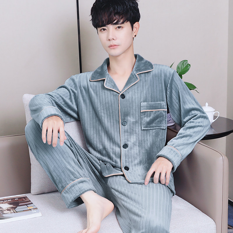 冬季珊瑚绒男士睡衣三层夹棉加厚加绒法兰绒秋冬款家居服保暖套装
