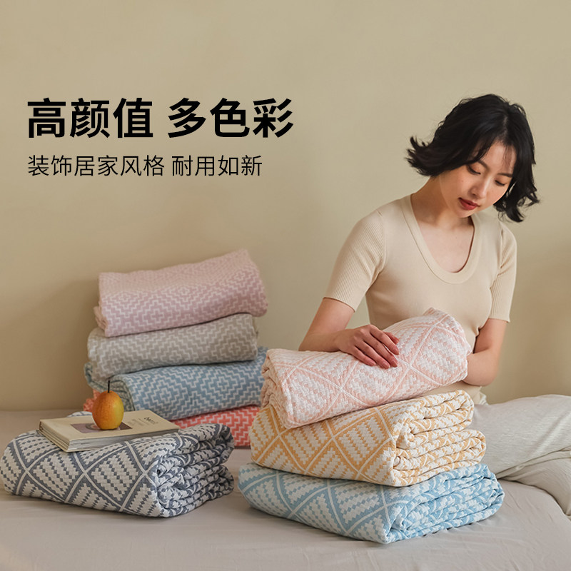 洁丽雅全棉三层纱布毛巾被纯棉夏季单人办公室午睡毯毛毯沙发盖毯