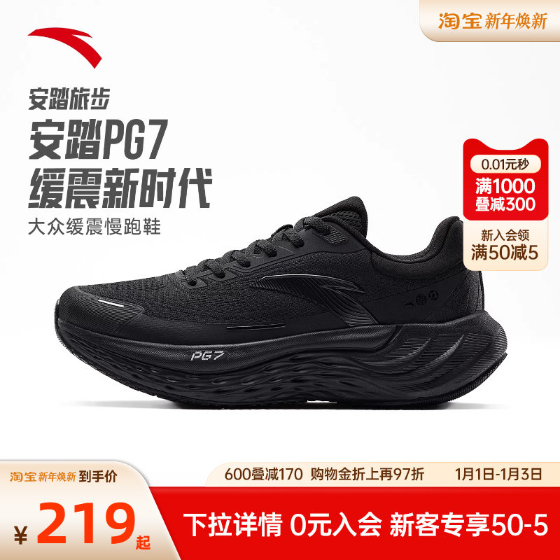 安踏旅步丨PG7跑步鞋男鞋冬季减震运动鞋男官方正品男士黑色跑鞋