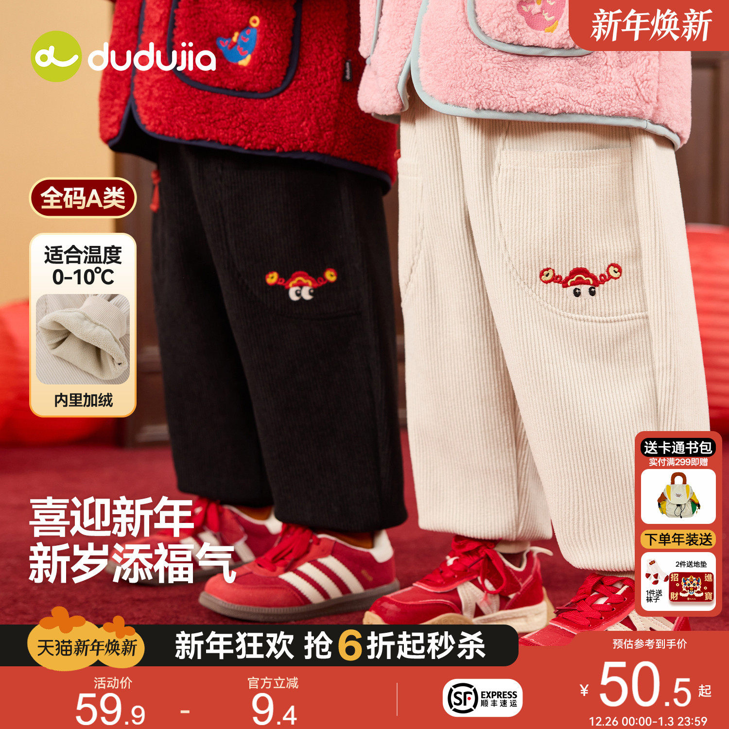 嘟嘟家儿童唐装裤子冬季男童拜年服长裤喜庆宝宝周岁礼服年装棉裤