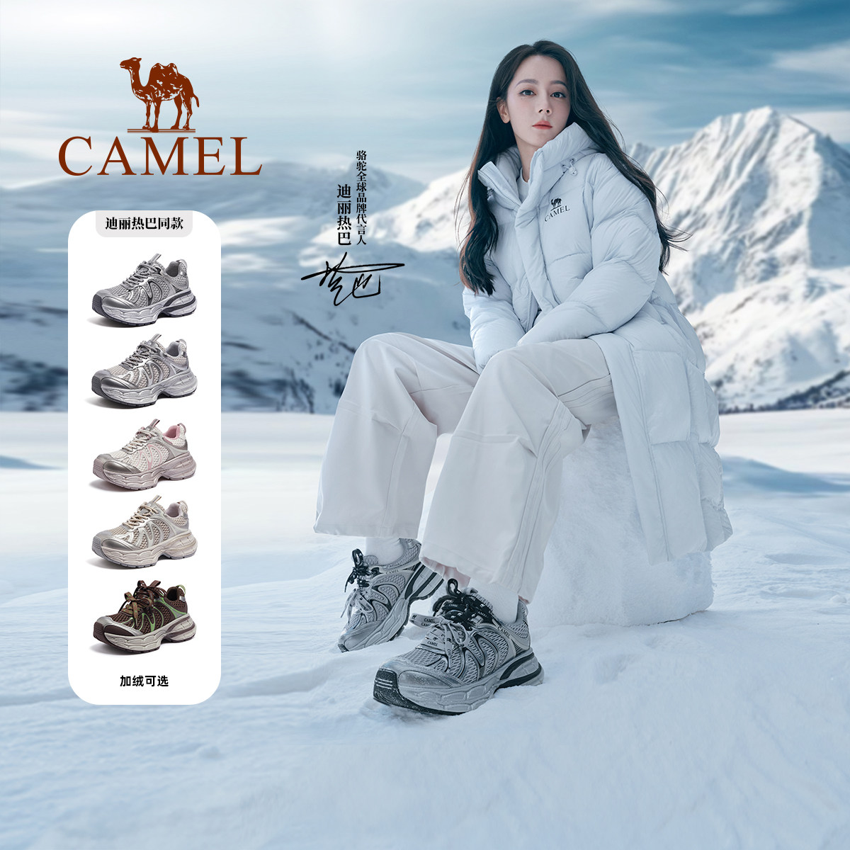 【迪丽热巴同款】骆驼银月户外复古老爹鞋女鞋秋季新款加绒运动鞋