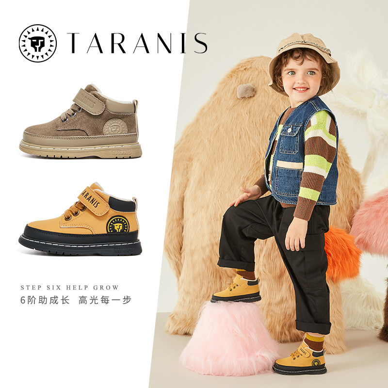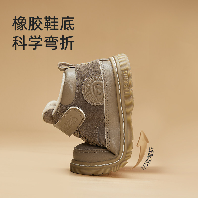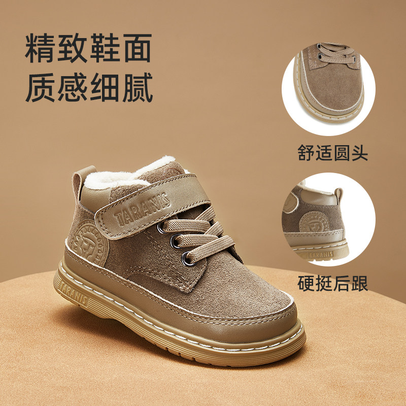 泰兰尼斯新款儿童马丁靴加绒小皮靴冬季保暖防滑耐磨男童亲子鞋