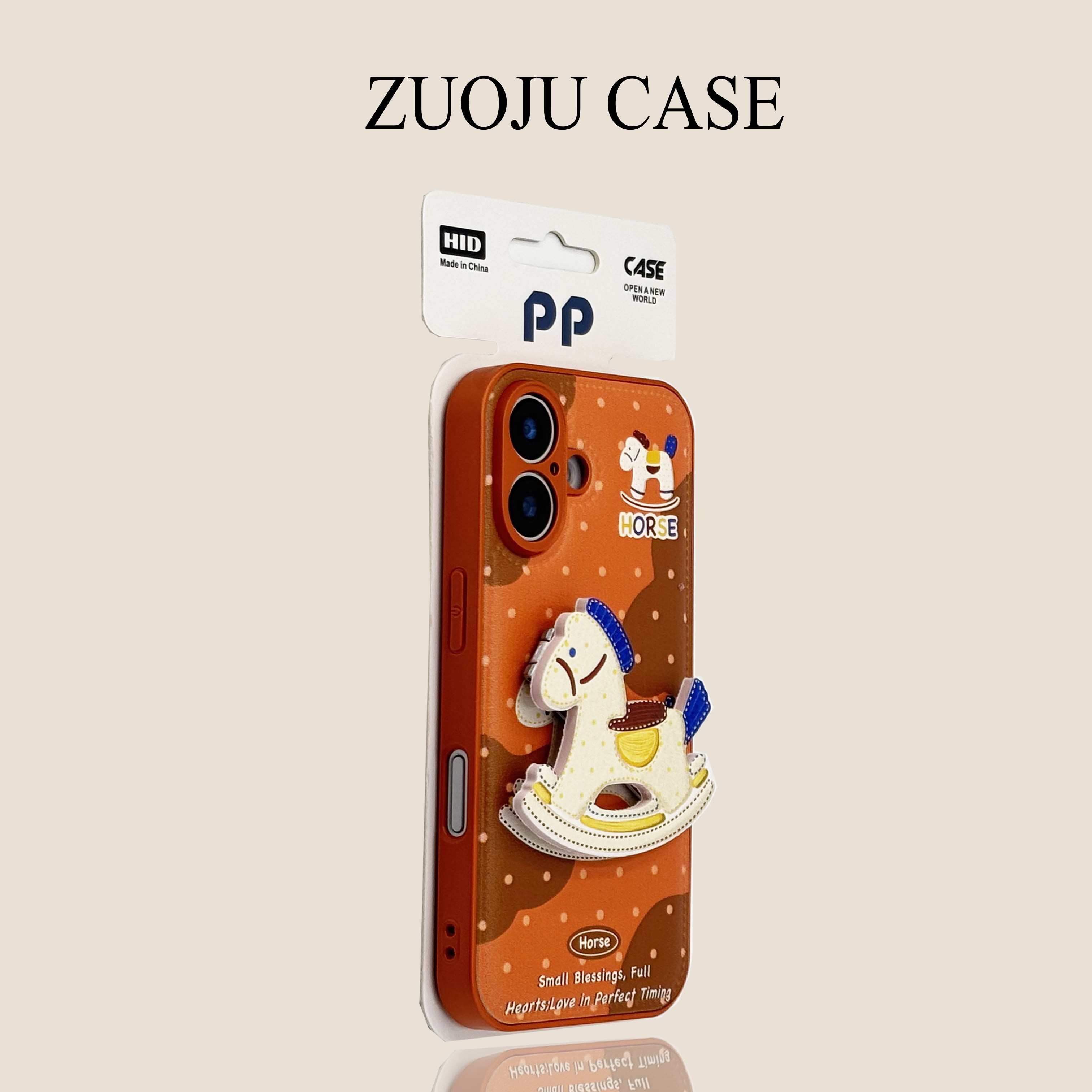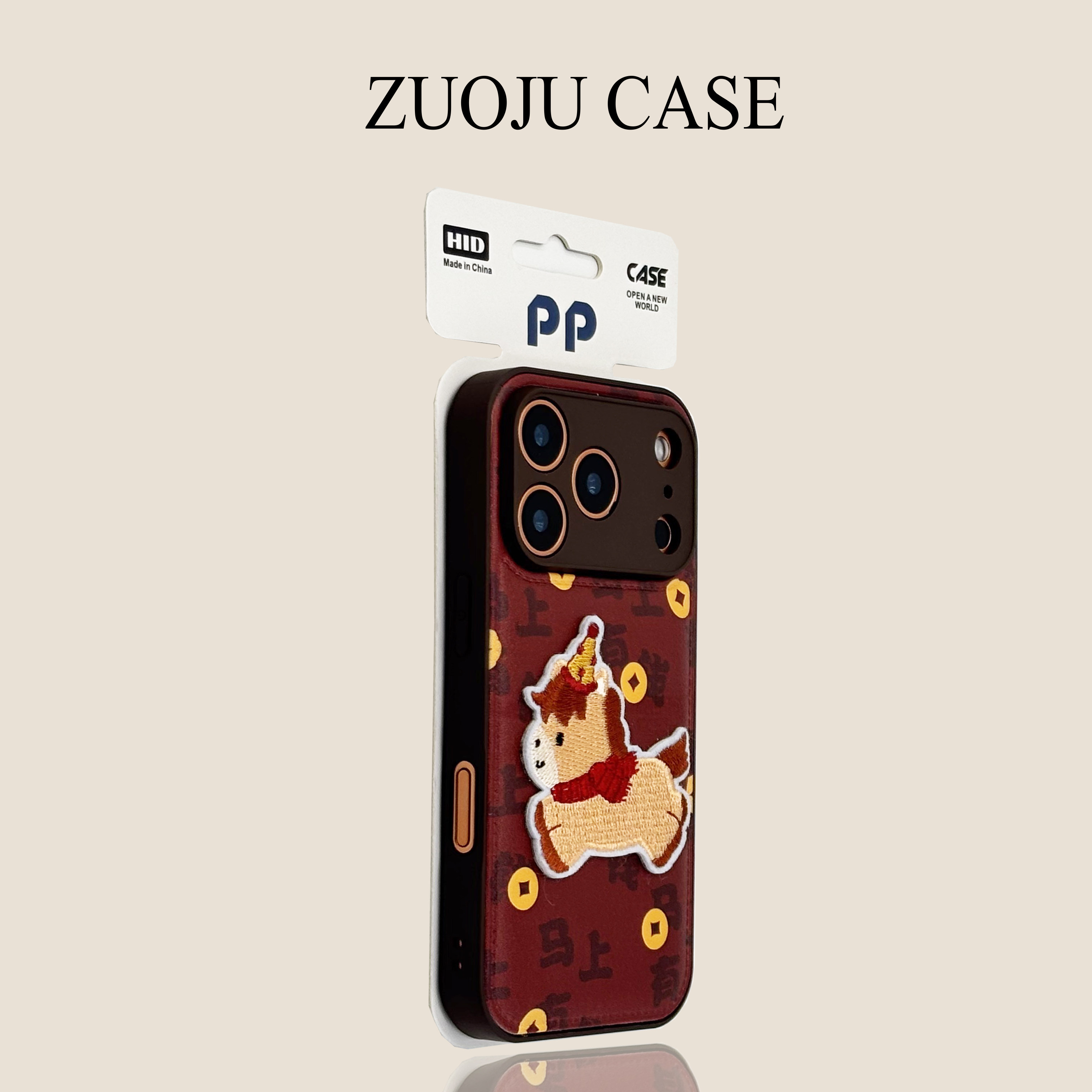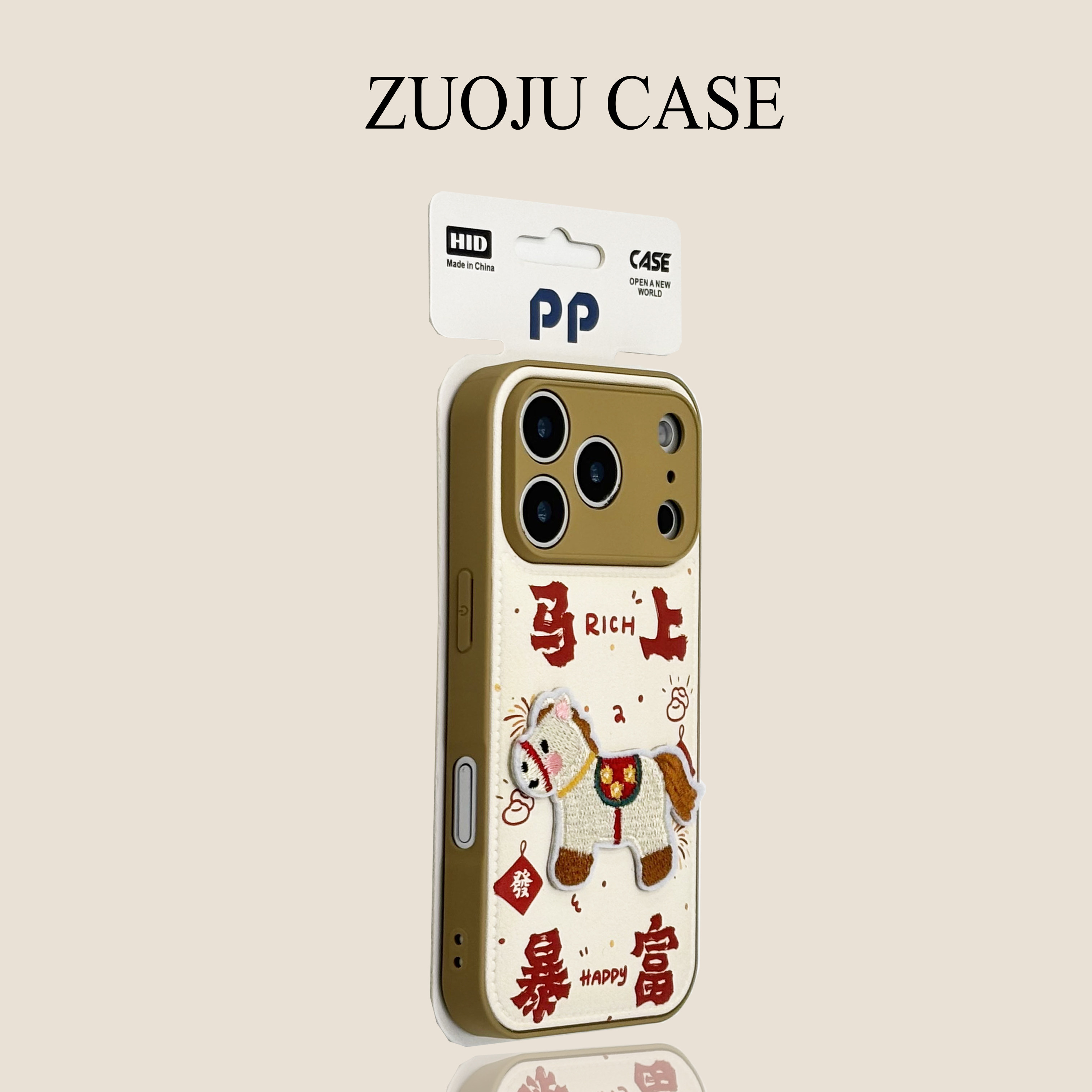 粉鼓包皮纹好运加马刺绣小马苹果17手机壳新款iphone17promax全包苹果16ProMax小众苹果15pro防摔女14p保护套