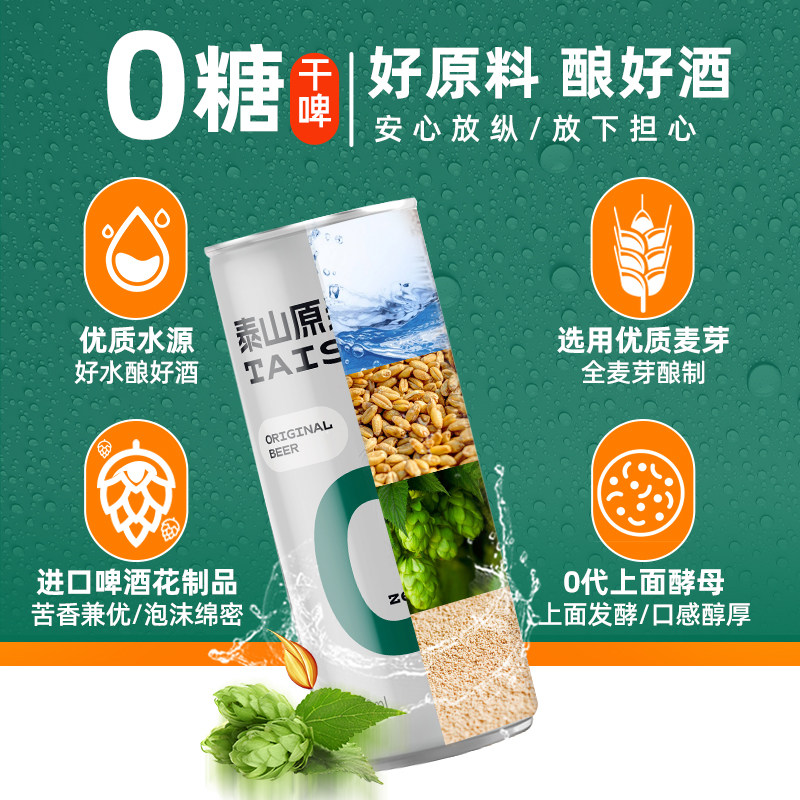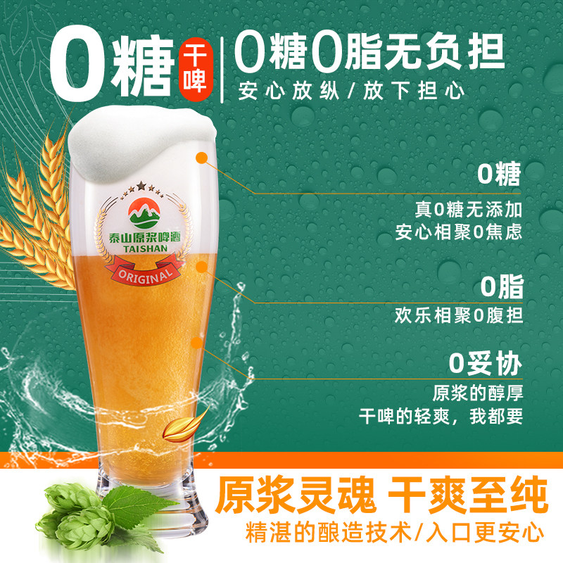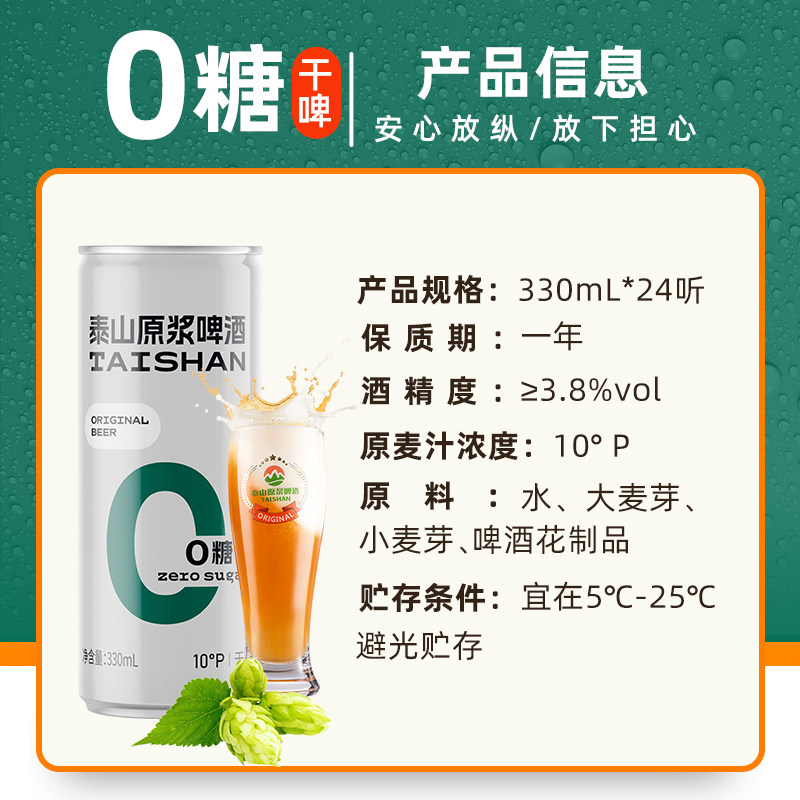 泰山啤酒原浆干啤0糖啤酒10度330ml*24听整箱装