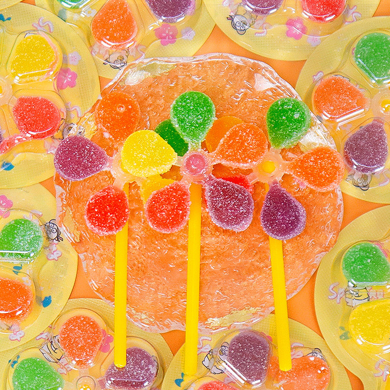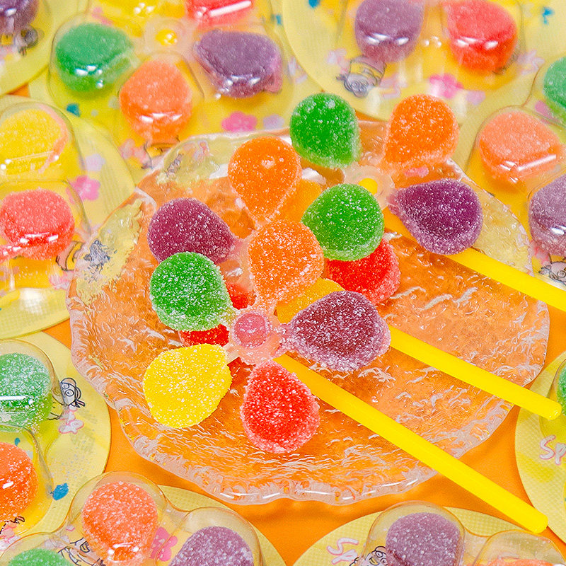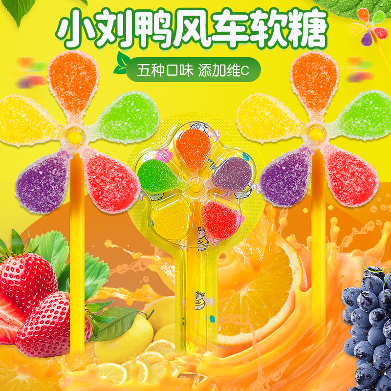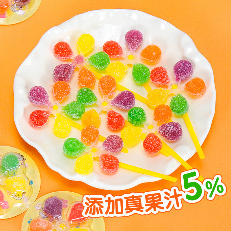 金稻谷卡通造型儿童五彩风车软糖棒棒糖零食糖果网红创意果汁盒装