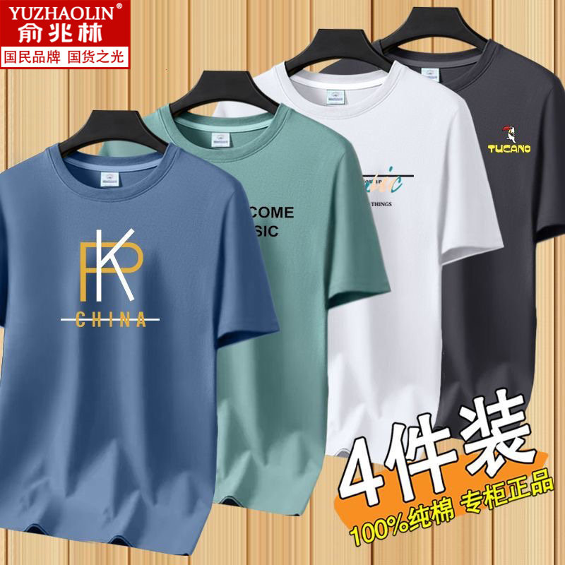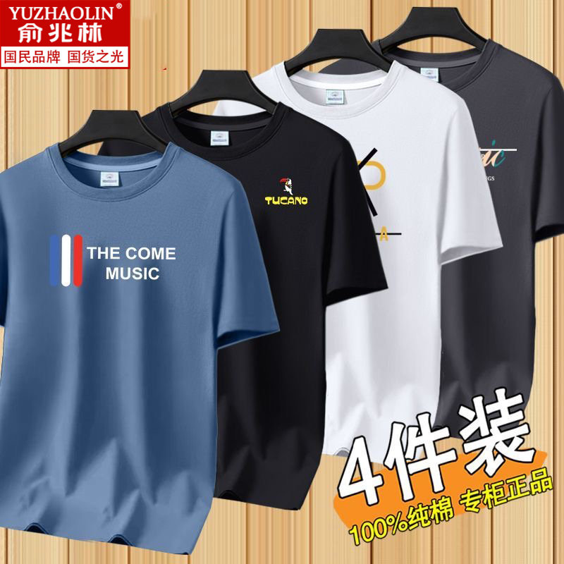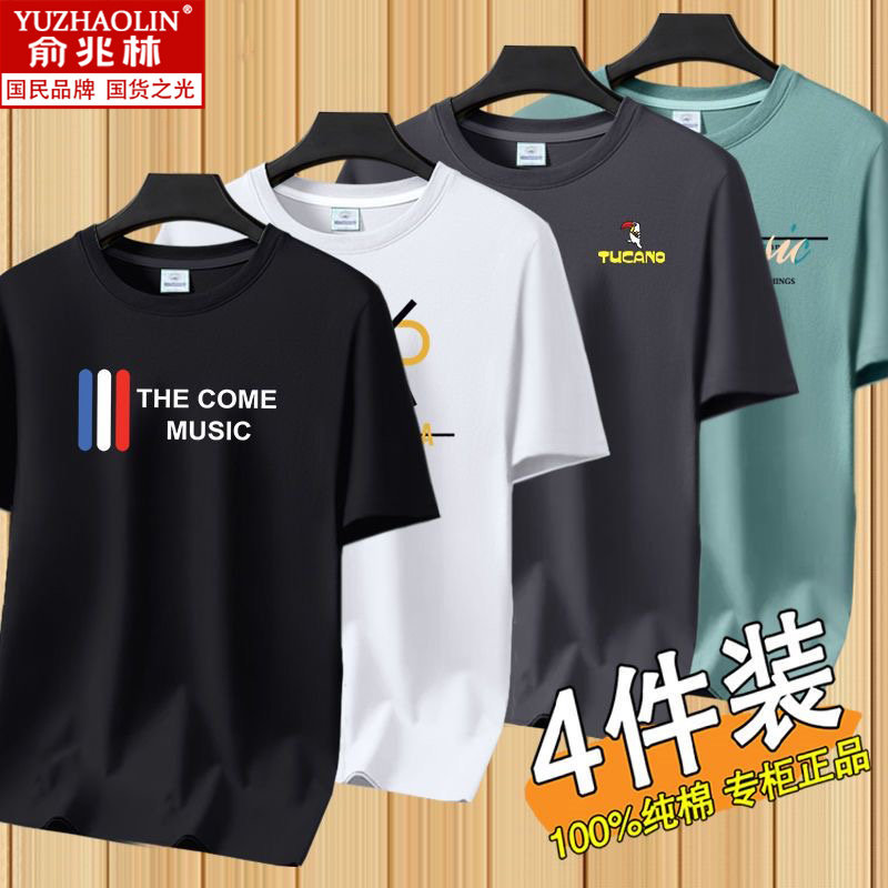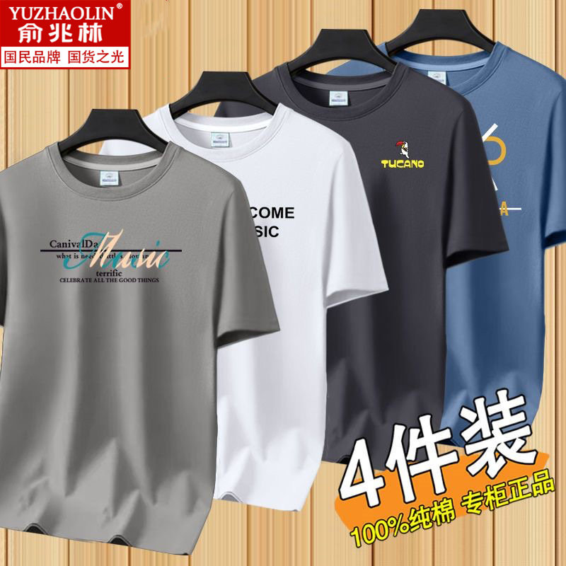 俞兆林纯棉休闲百搭圆领体恤衫男士夏季运动跑步宽松印花短袖T恤