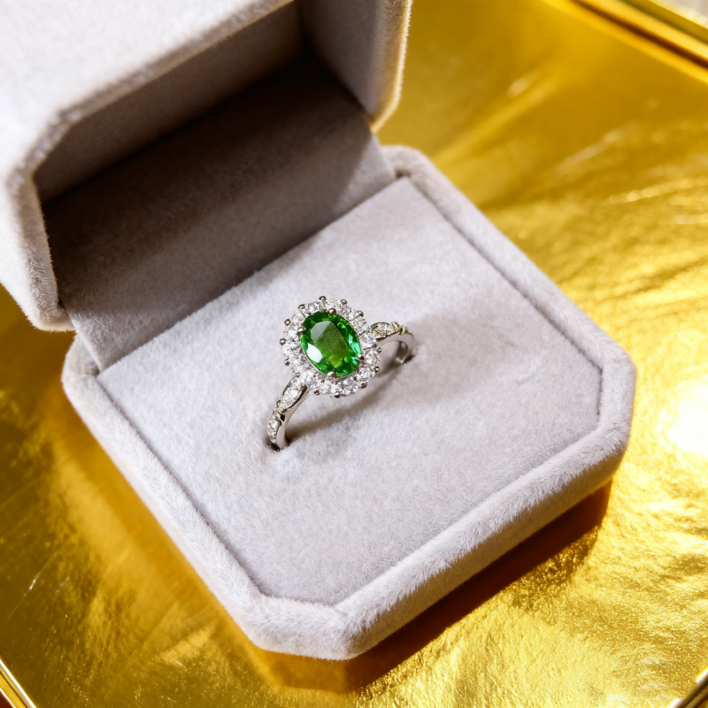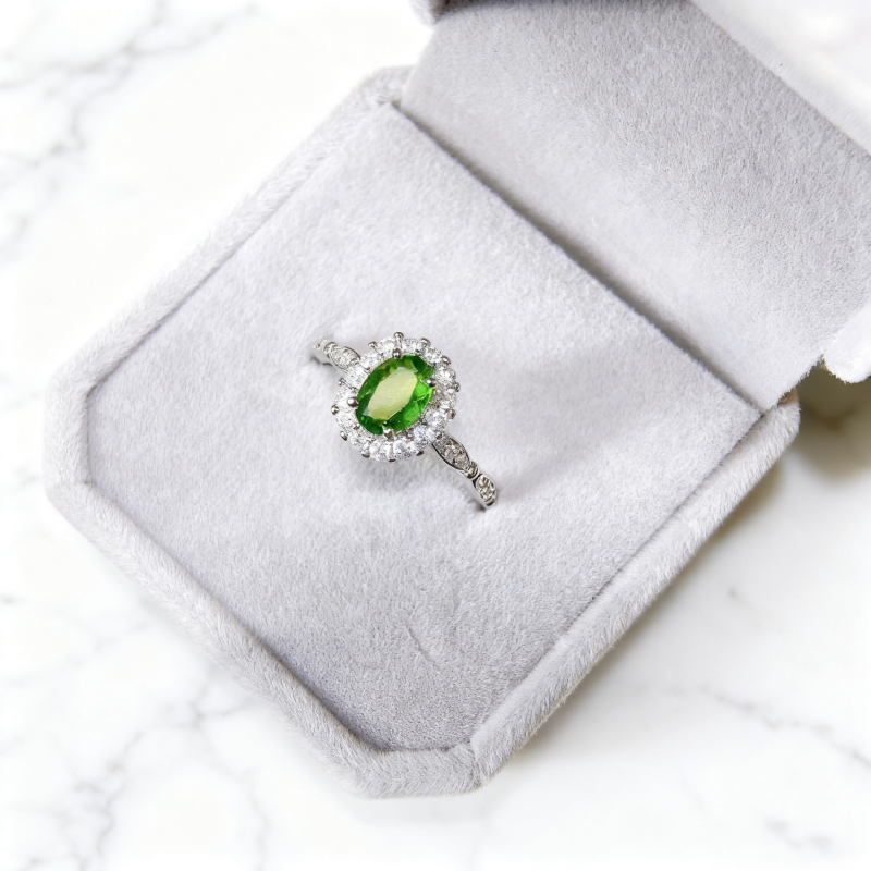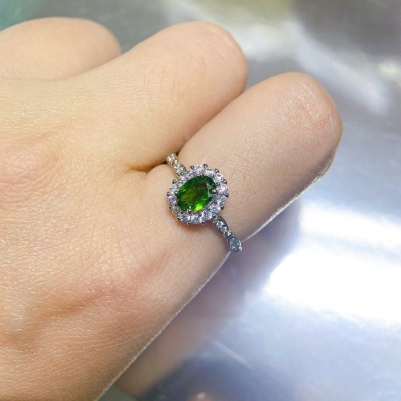 爆款热卖天然透辉石椭圆形女戒指跨境爆款配饰