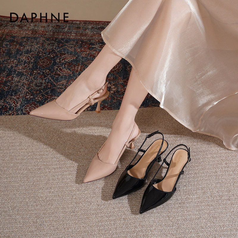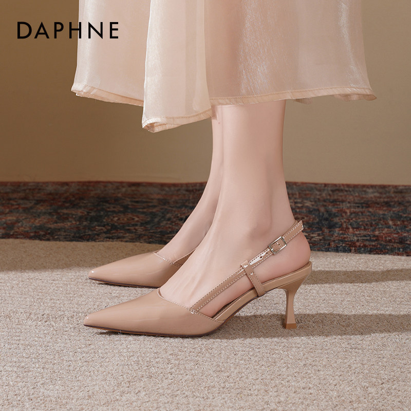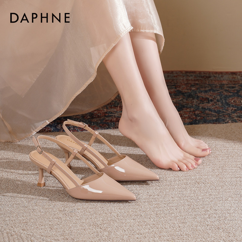 达芙妮裸色高跟鞋女2026新款春季尖头细跟后空单鞋包头高跟凉鞋女