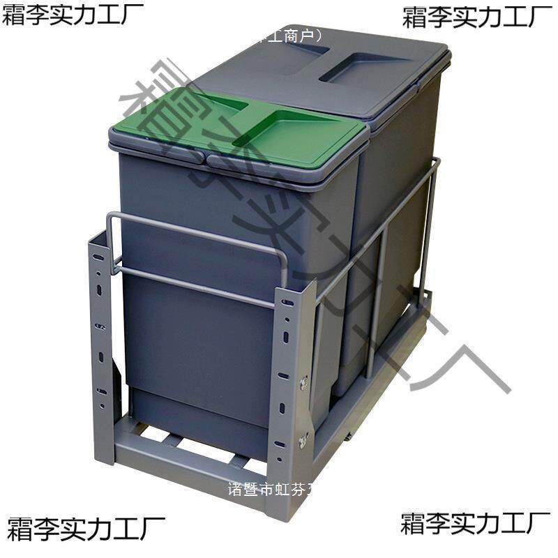 厨房带盖隐藏嵌入式高身浅窄垃圾杂物桶抽拉分类橱柜内置米面收纳