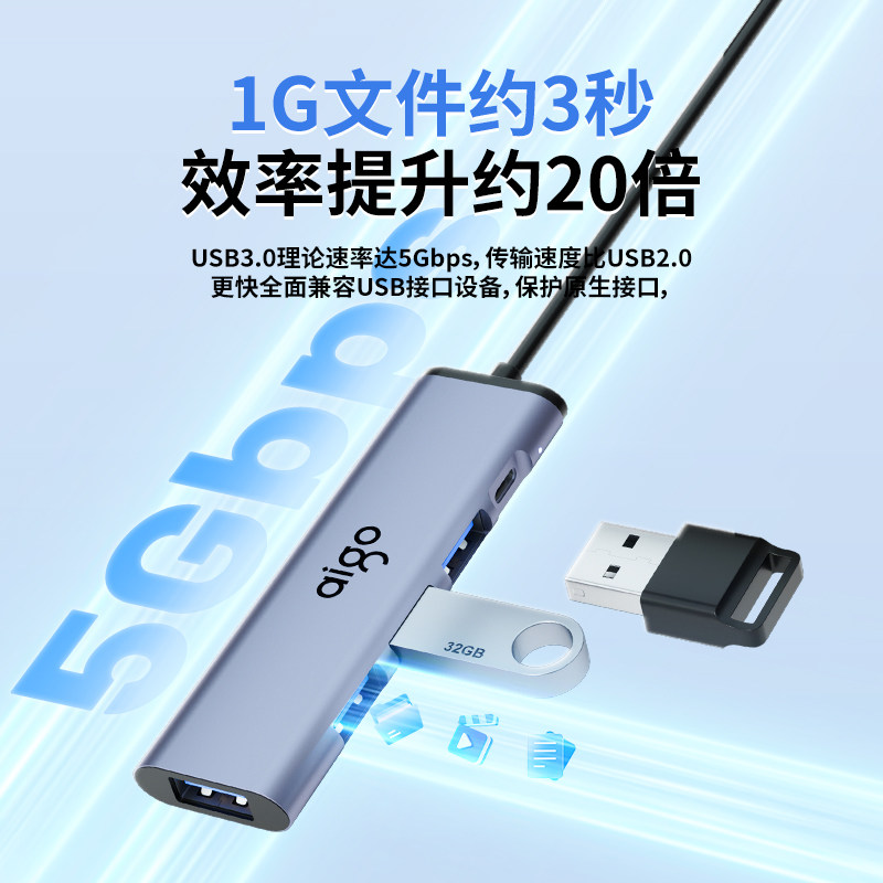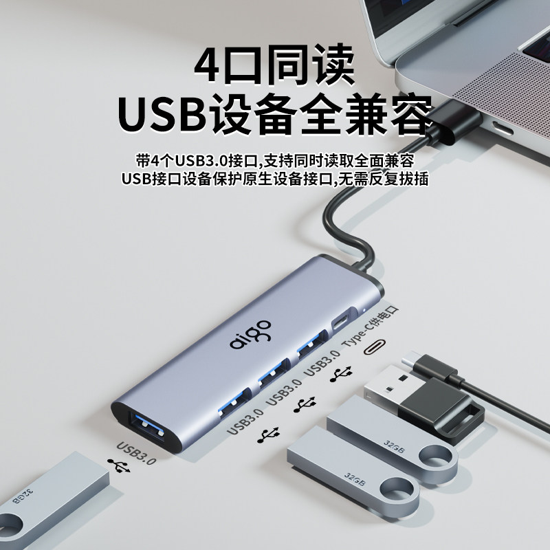 爱国者usb拓展坞插头多口一分二集分线器typec延长线hub3.0外接u盘带供电转接头转换器笔记本电脑多接口扩展
