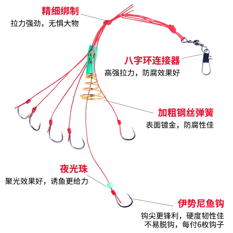 赤袖绑好鱼钩套装全套红袖子线双钩成品防缠绕鱼线鱼具钓鱼用品