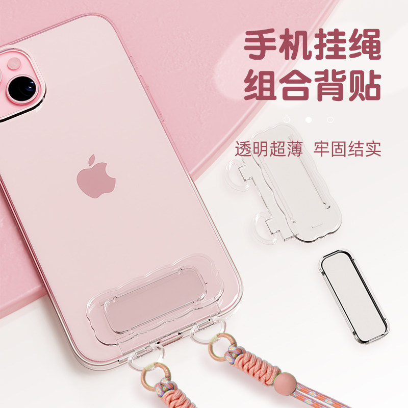 手机挂绳透明贴环扣可挂绳手链牢固不易脱落粘纸手机壳背面配饰挂件背贴可爱女款网红防丢绳