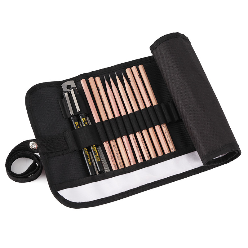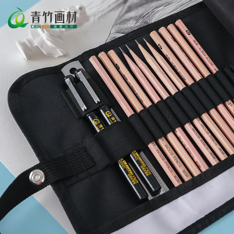 青竹画材旗舰店素描卷笔袋笔帘帆布折叠式收纳包36/38孔成人美术用品按扣铅笔文具收纳袋彩铅卷帘美术生专用