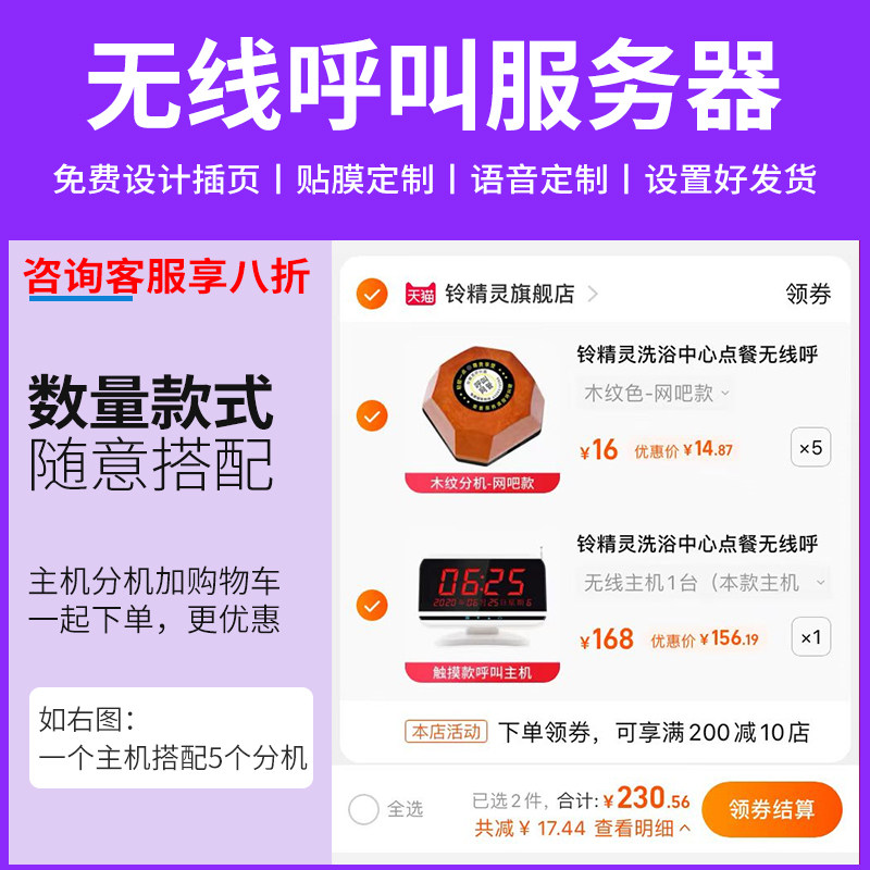 铃精灵无线呼叫铃包厢服务铃餐厅茶楼呼叫器餐饮酒店网吧棋牌室房间足浴中心火锅店呼唤台卡服务员手环表分机