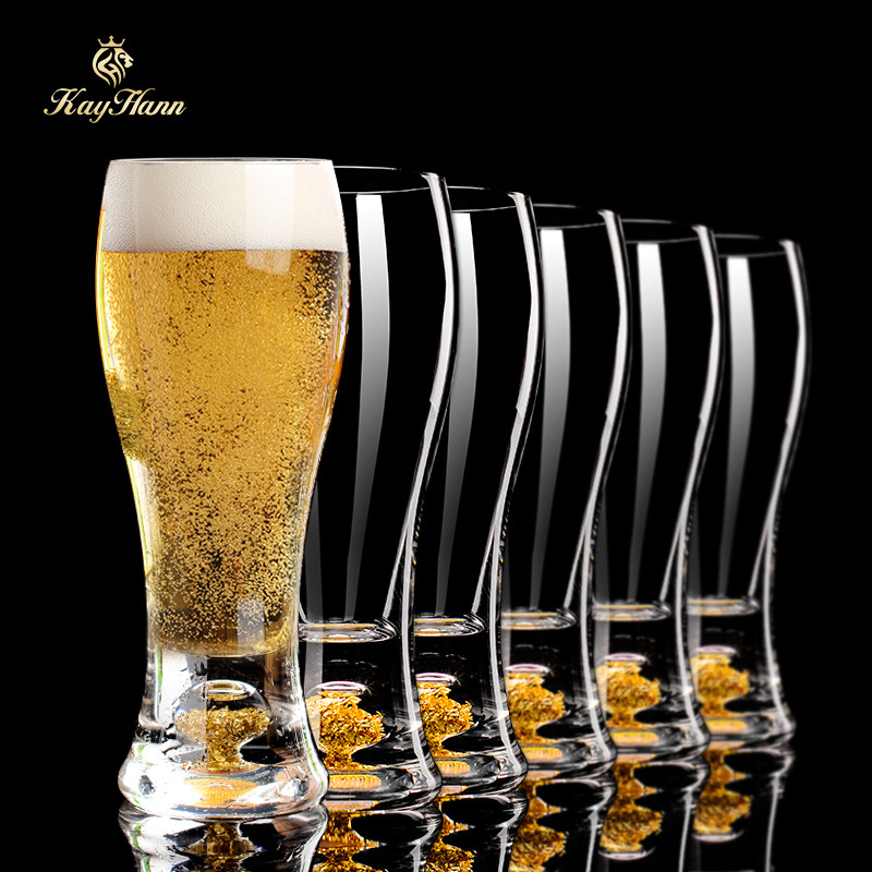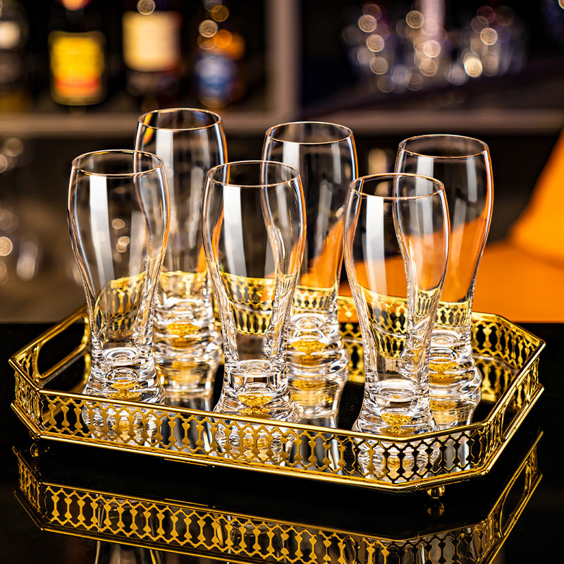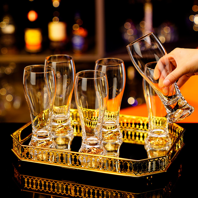 水晶金箔啤酒杯大容量畅饮家用套装 创意精酿扎啤杯子六只装