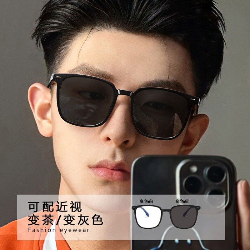 黑框近视眼镜框墨镜男感光镜片茶色ins防紫外线太阳镜防蓝光变色