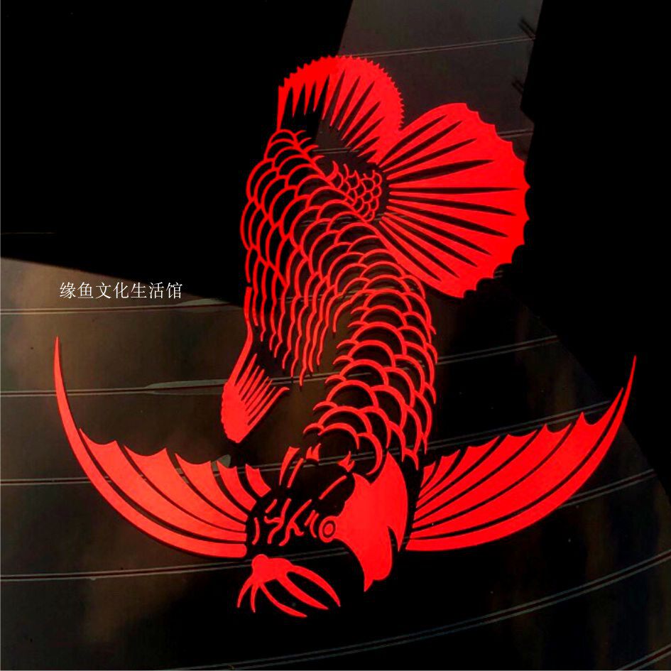 龙鱼贴纸镂空反光设计防水汽车划痕鱼缸玻璃个性装饰鱼文化原创