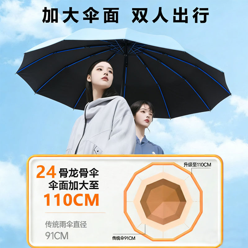 24骨全自动雨伞女晴雨加固折叠抗风男遮太阳伞防晒紫外线加大号厚