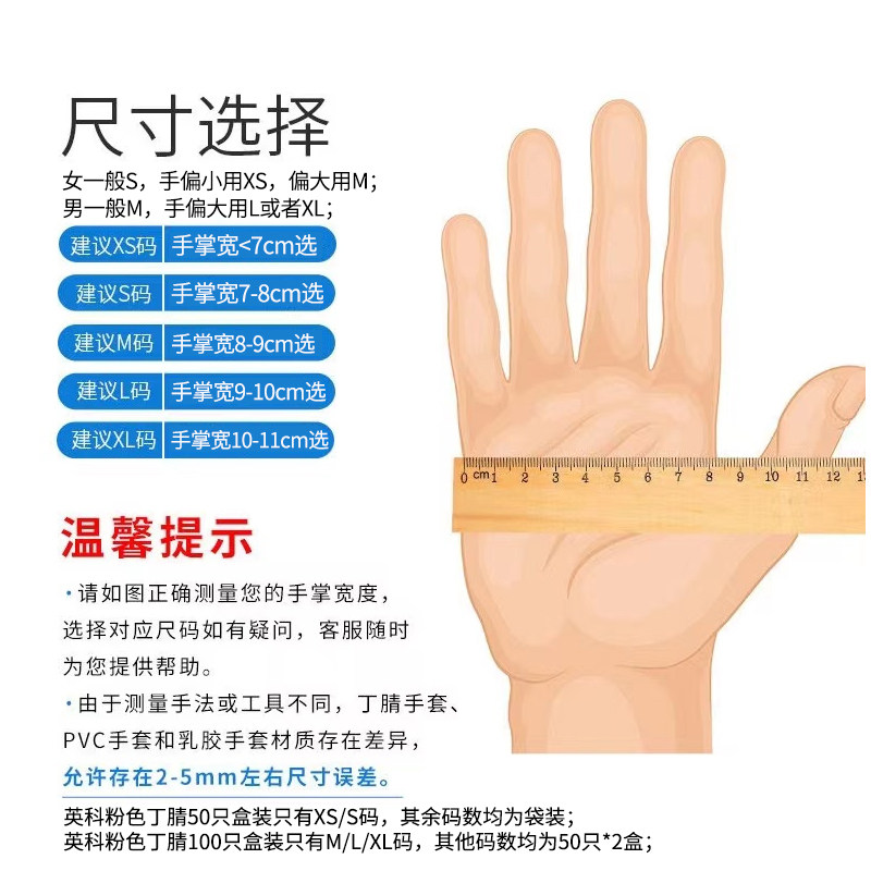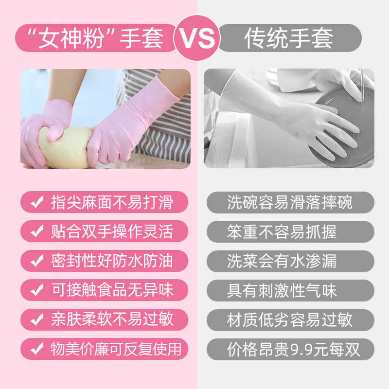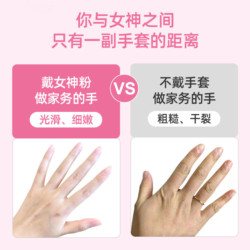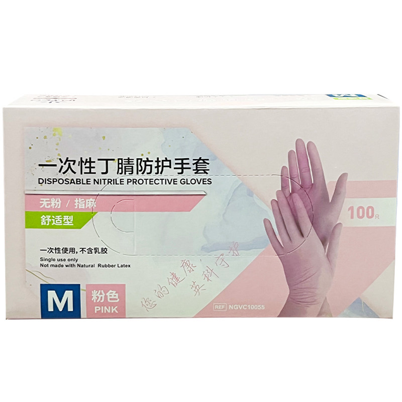 英科一次性粉色丁腈手套女乳胶食品丁睛美容厨房烘焙家务加厚防水