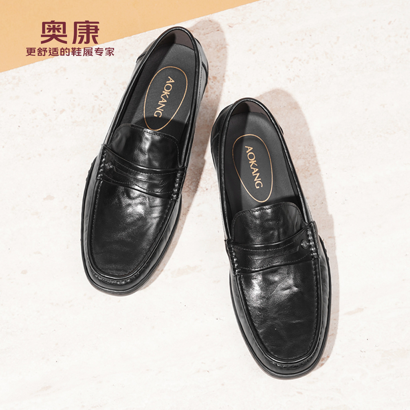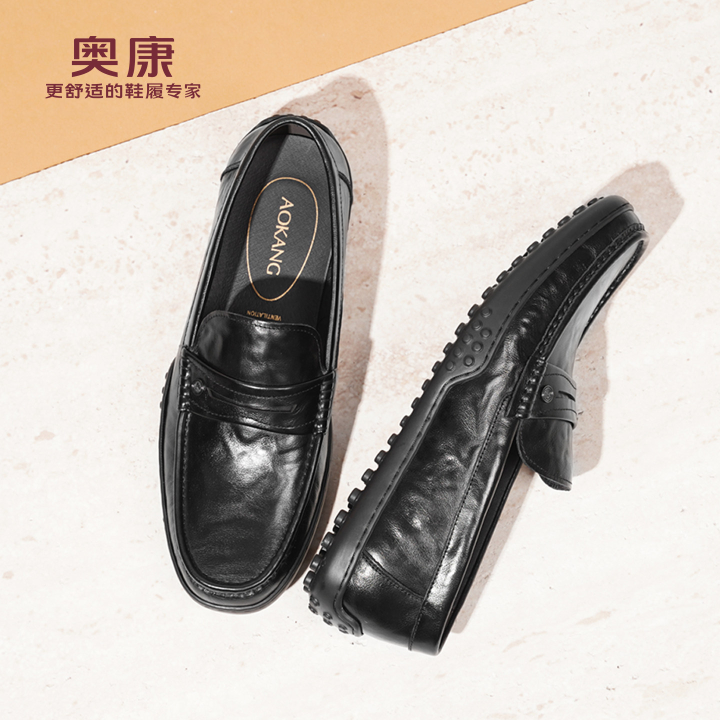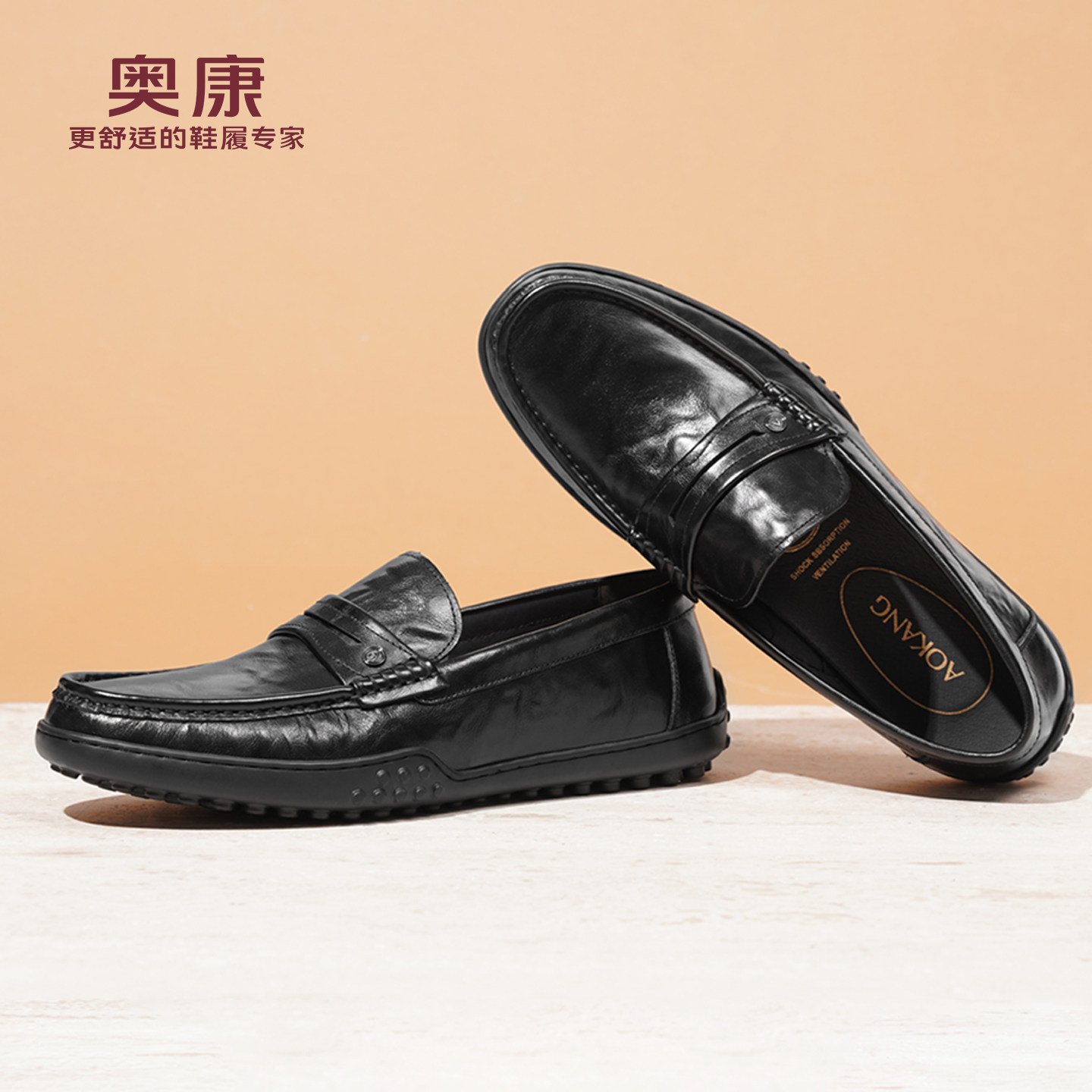 奥康 男鞋2025秋季新款乐福鞋真皮透气休闲豆豆鞋一脚蹬男皮鞋L