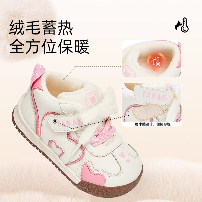 泰兰尼斯复古面包鞋女宝宝学步鞋冬季新款加绒童鞋防滑女童机能鞋
