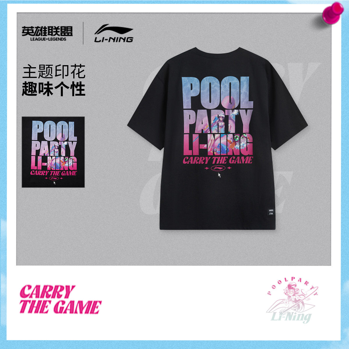 李宁X英雄联盟联名系列短袖T恤男士女士2025新款夏季针织运动服