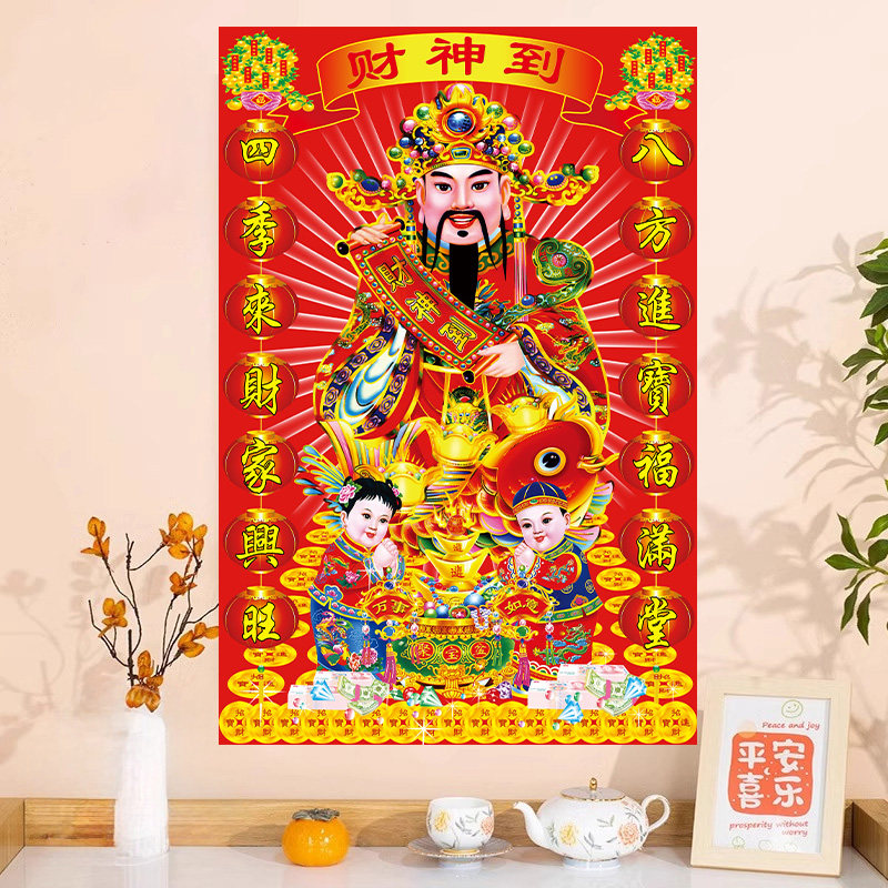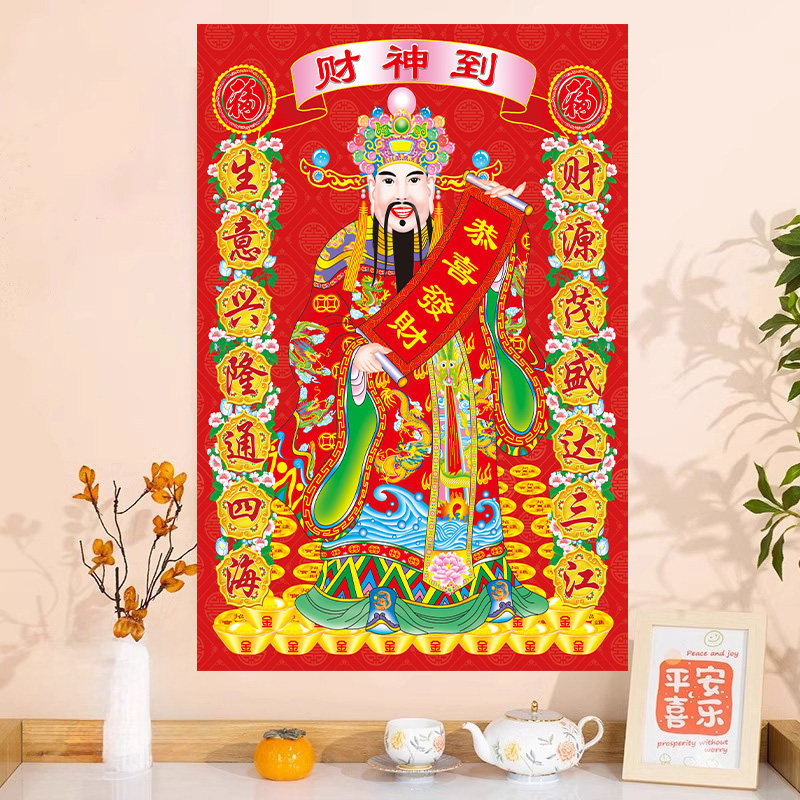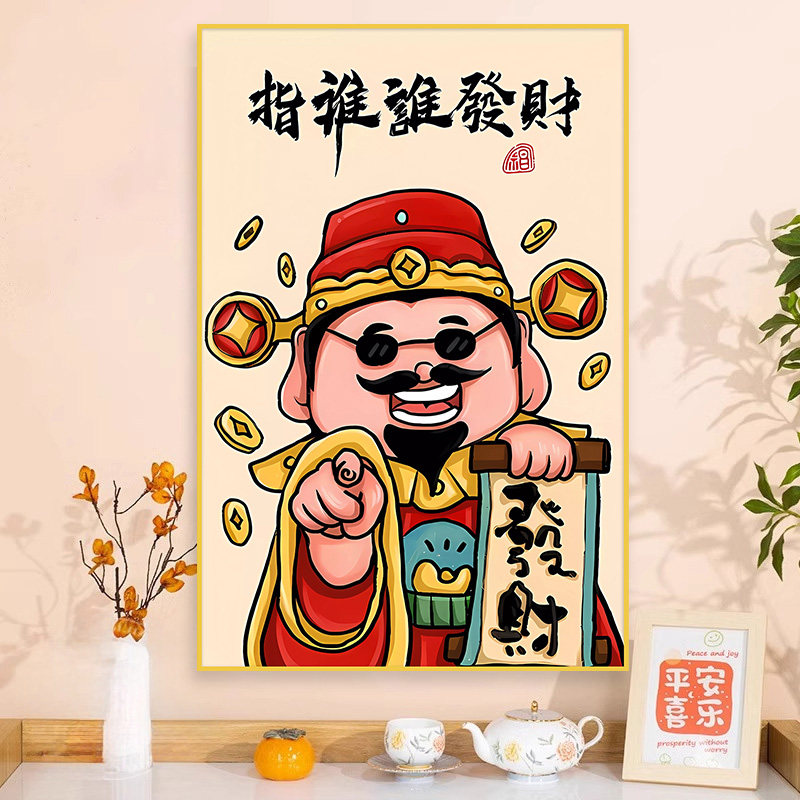 财神爷装饰画墙贴画卧室客厅背景墙壁画指谁谁发财餐厅玄关装饰画