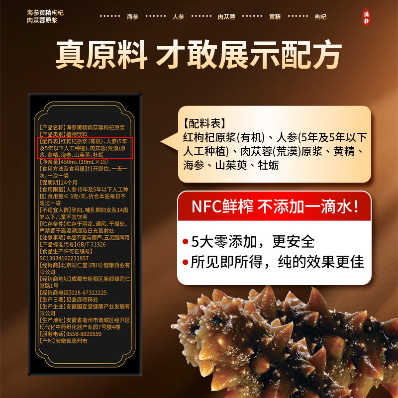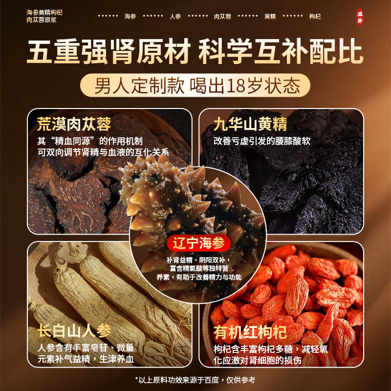 海参人参黄精肉苁蓉枸杞原浆男士养生男性补精官方旗舰店年货节