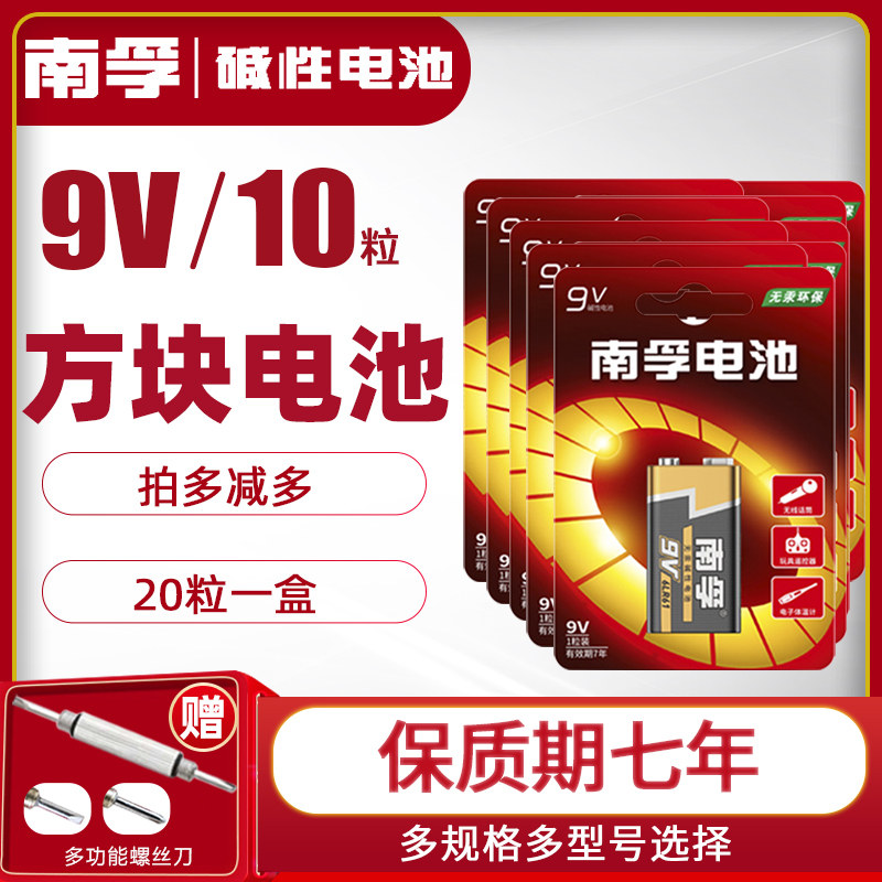 南孚9V碱性方块九伏电池10节万用表玩具无线话筒遥控器烟雾报警器麦克风话筒玩具6LR61叠层九伏6F22体温枪