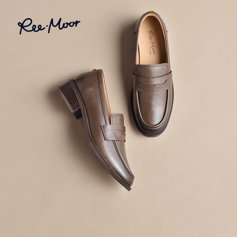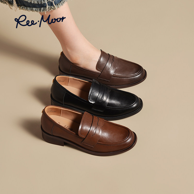 REEMOOR睿慕2025秋季新款英伦风乐福鞋软底皮鞋厚底增高单鞋女鞋
