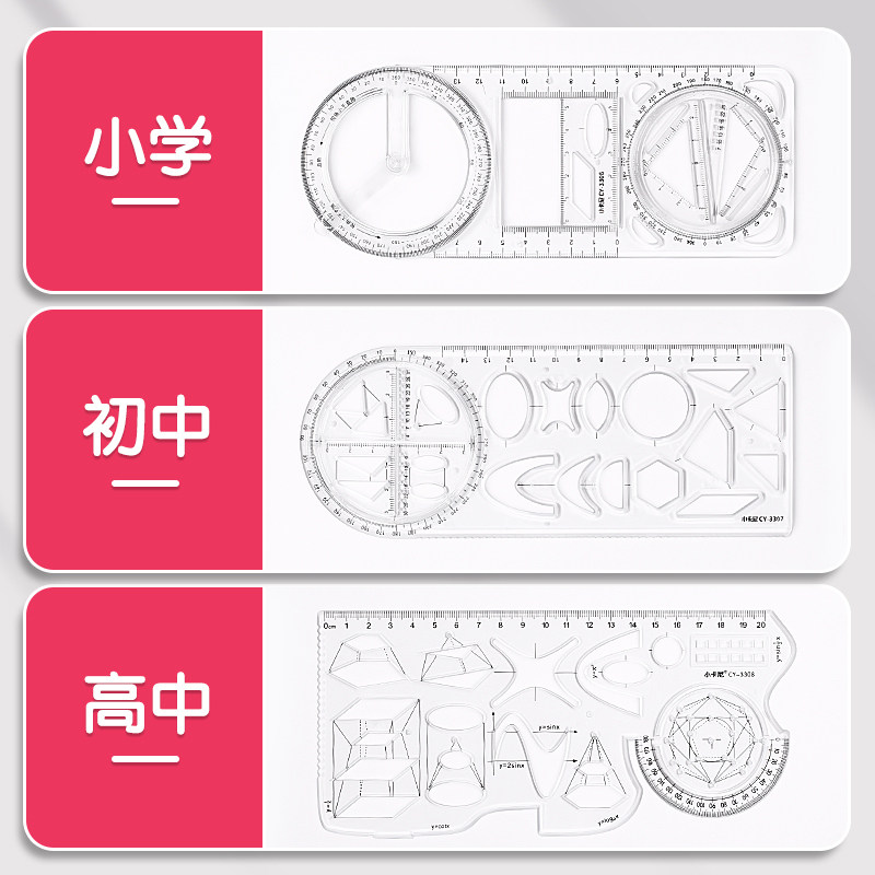 中小学多功能绘图尺子数学几何图形软尺小学生带波浪线量角初高中函数套尺手抄报平行三角尺儿童画圆模板