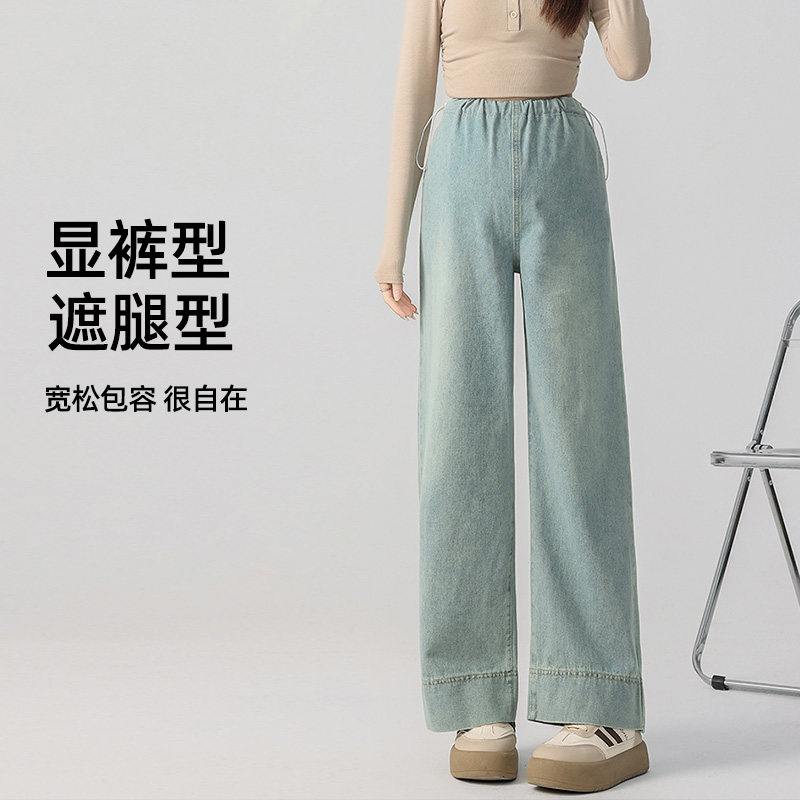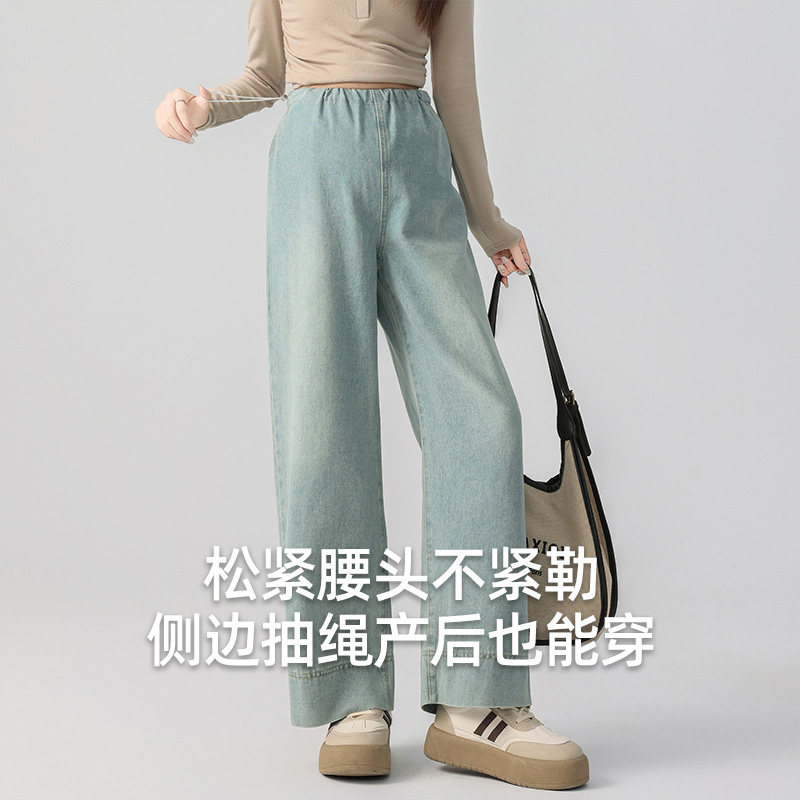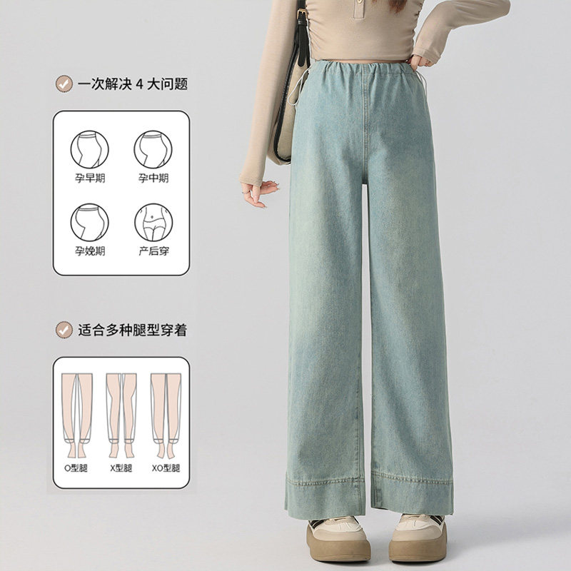 婧麒孕妇裤子秋冬季外穿2025新款直筒牛仔裤不勒肚子阔腿裤孕妇装