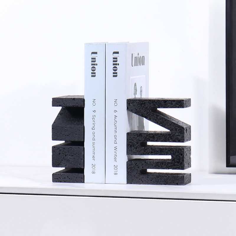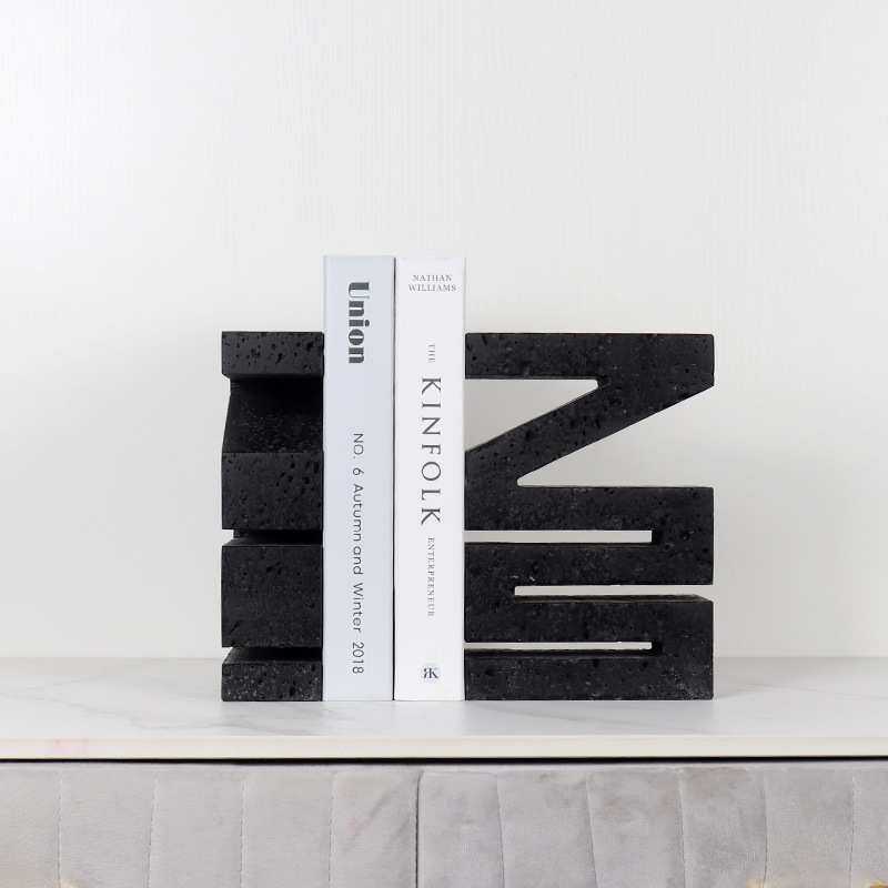 新中式天然大理石几何形字母书档摆件书房样板间桌面整理书靠书立