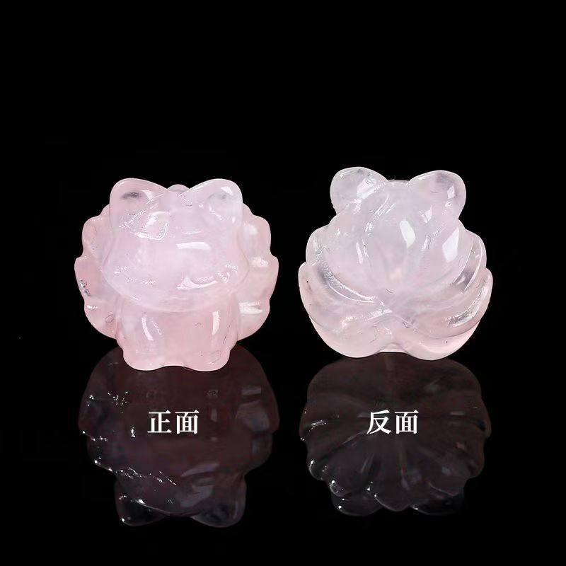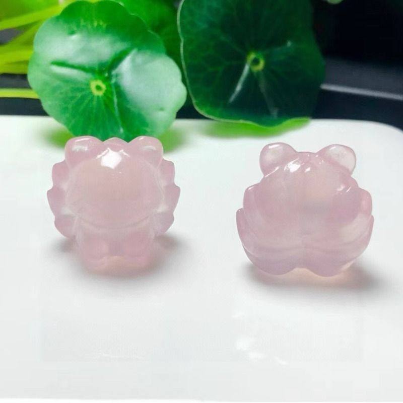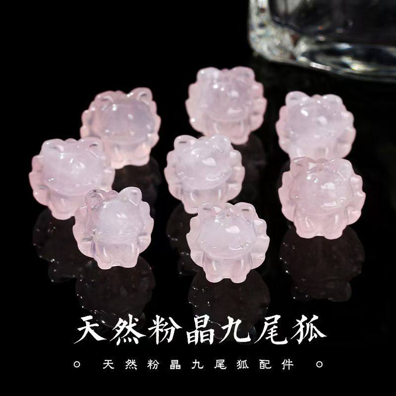 天然粉水晶炸毛小九尾狐狸竖通孔雕刻件diy手链串珠隔珠配件粉晶