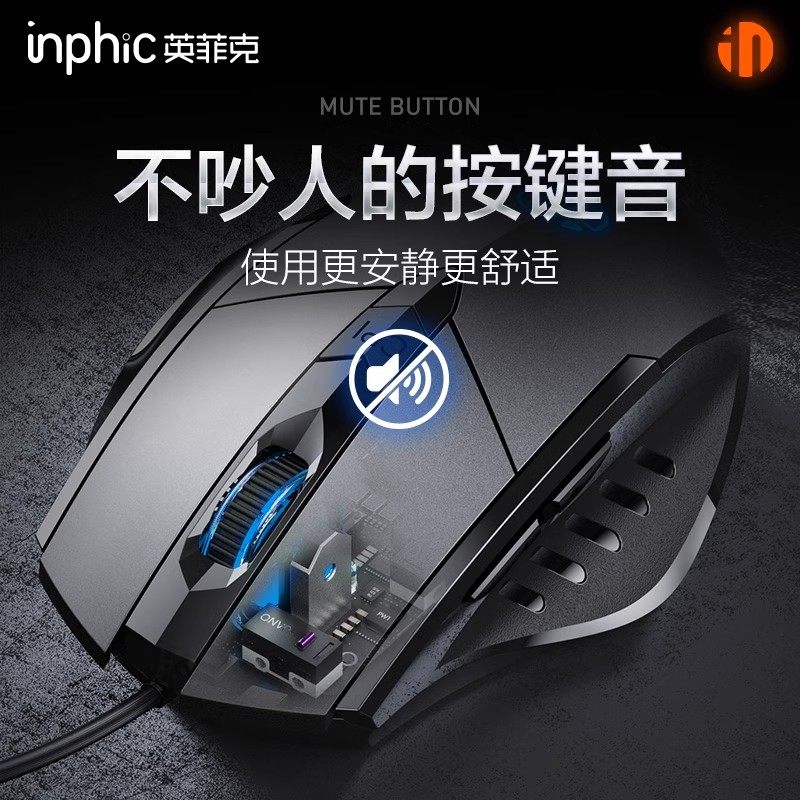 英菲克PW1有线鼠标静音游戏电竞机械宏办公usb台式笔记本电脑专用