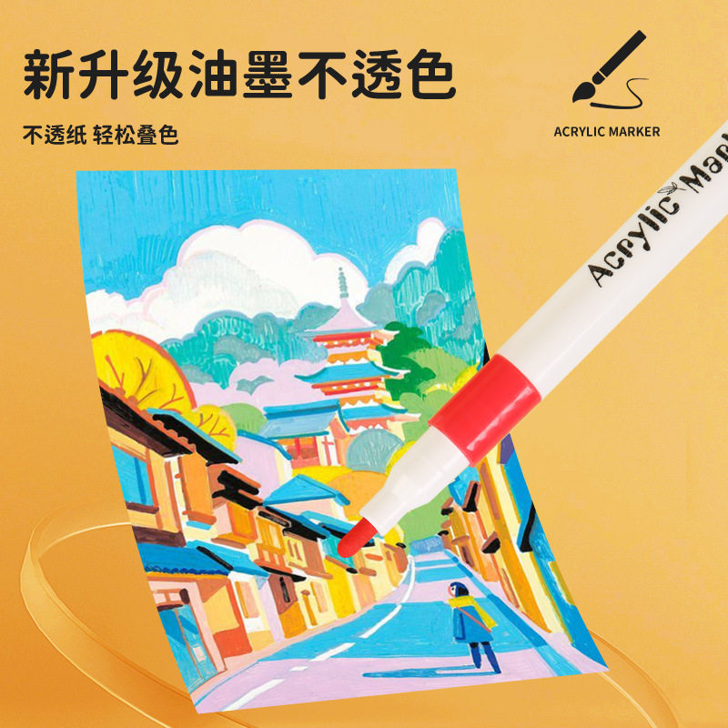 丙烯马克笔学生专用美术业不透纸可叠色儿童幼儿园小学无毒可水洗