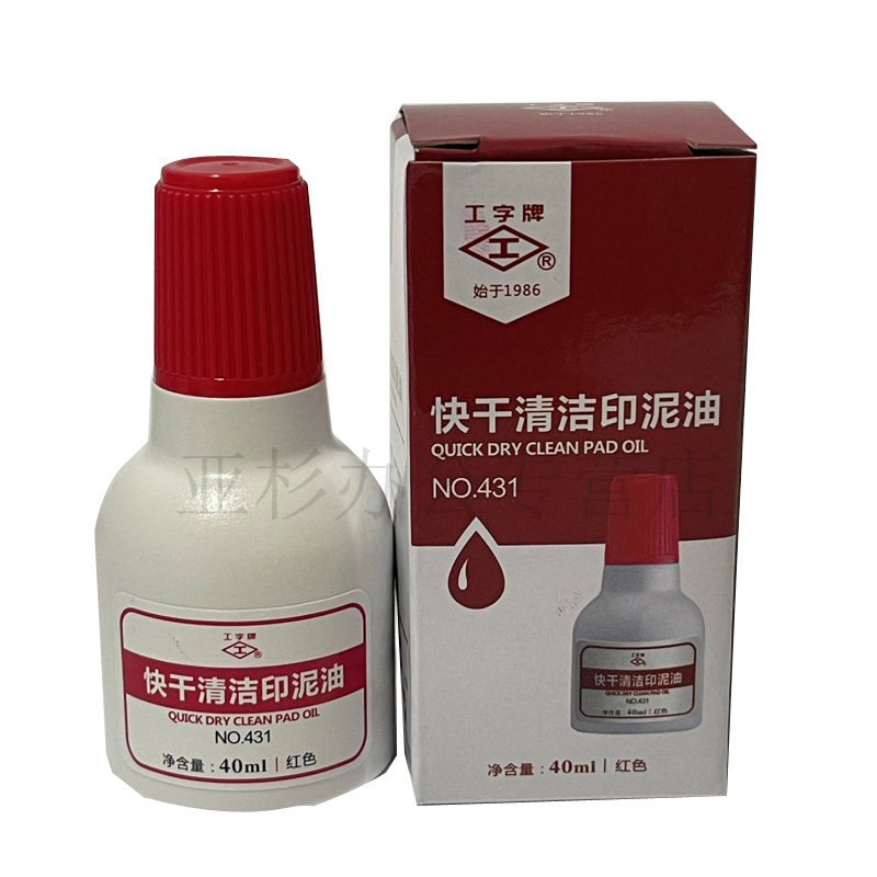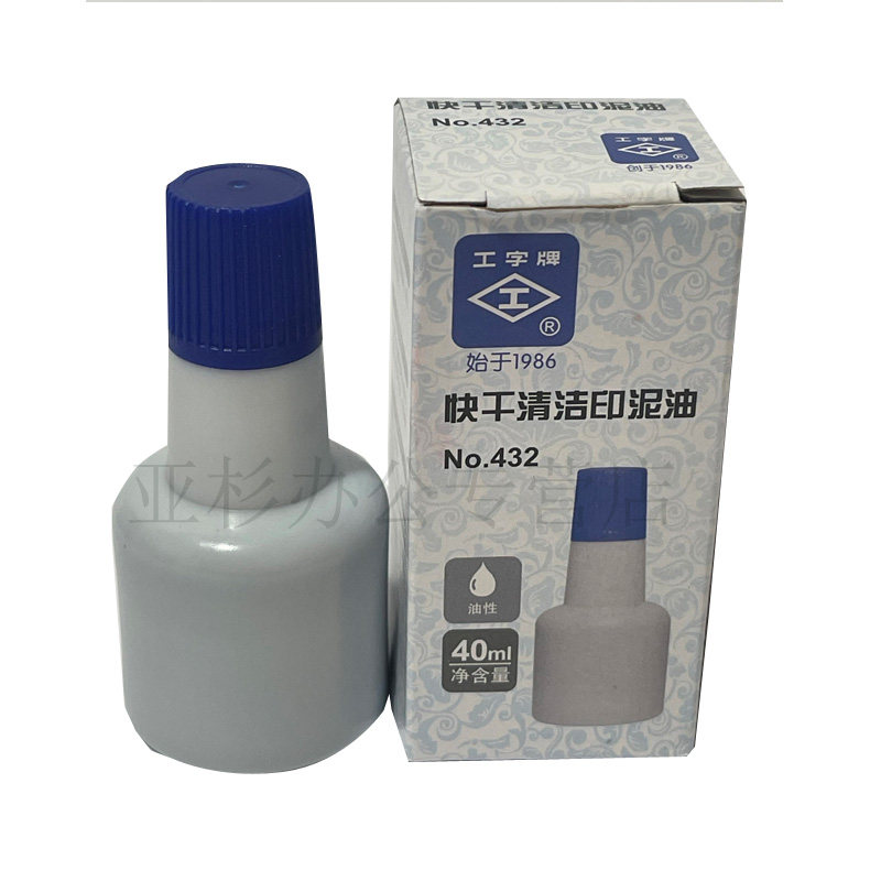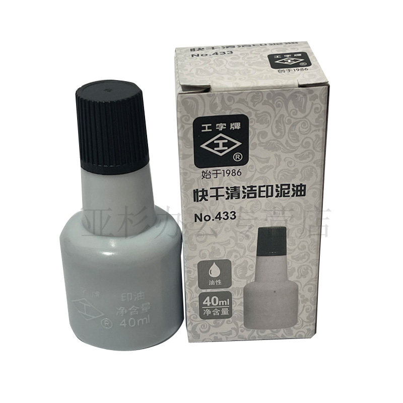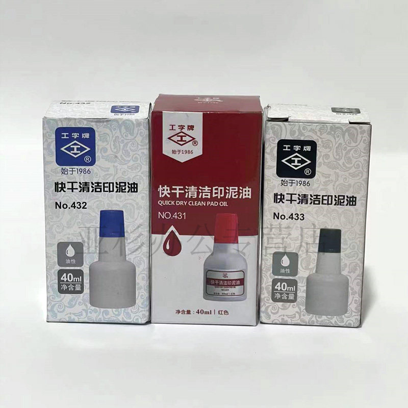 工字牌 431/432/433红色蓝色黑色 快干清洁印油 工字快干印油 财务用油性速干印台添加油墨 印泥油40ml