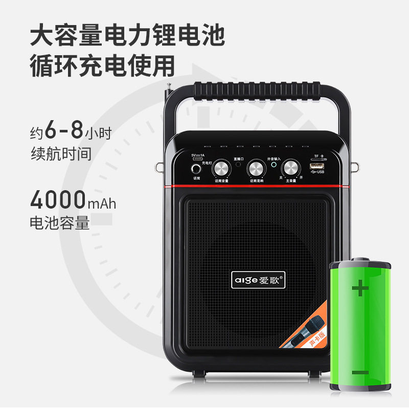 网红同款爱歌S60户外k歌音响直播声卡一体机麦克风蓝牙广场舞音箱