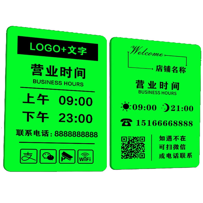 亚克力夜光营业时间告示牌工作室门牌广告牌定制招牌24小时营业服装店美容院店铺门口电话上下班休息时间挂牌