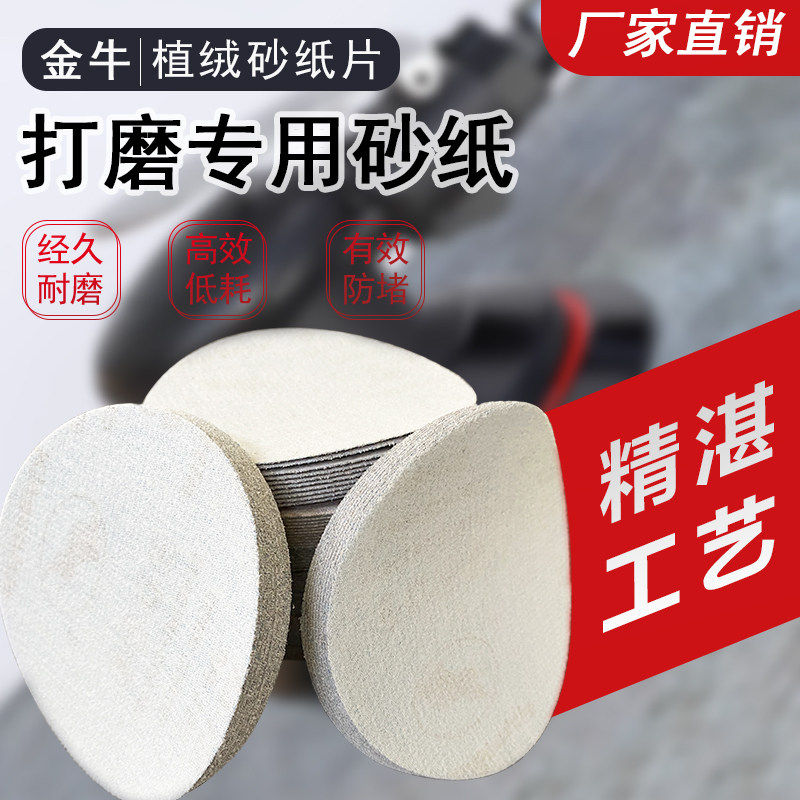 金牛植绒砂纸4寸5寸气磨机抛光打磨圆盘砂纸金属汽车木工干磨砂纸